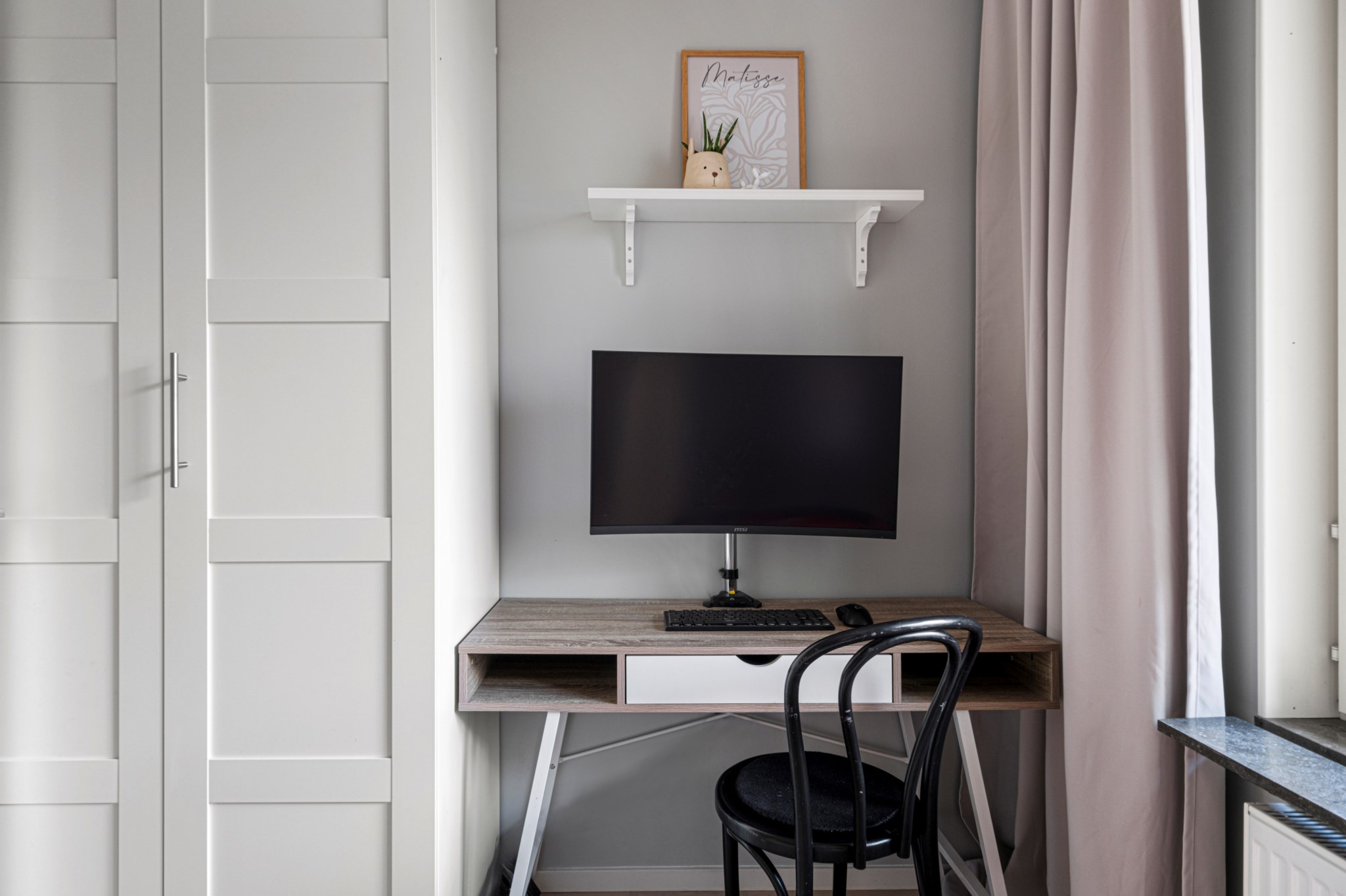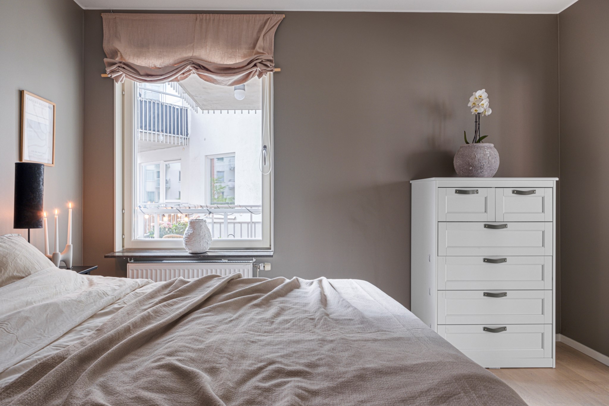 I detta sovrum får du också lugn och ro med fönster mot innergården. Här finns gott om plats för det mesta om man vill använda det som rum för barnen eller som ett master bedroom.