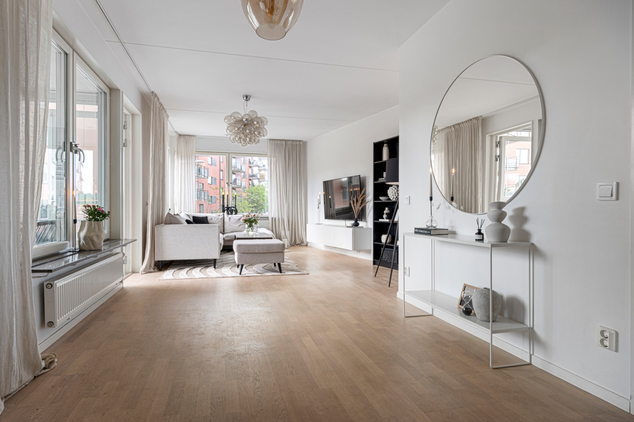 Välkommen till ett enastående tillfälle att förvärva ett av Liljeholmskajens mest attraktiva boenden, en ljus och luftig hörnlägenhet som bjuder på det lilla extra. Här bor du med en fin utsikt och ett fantastiskt ljusinsläpp från fönster i samtliga fyra väderstreck, något ytterst ovanligt och mycket eftertraktat.