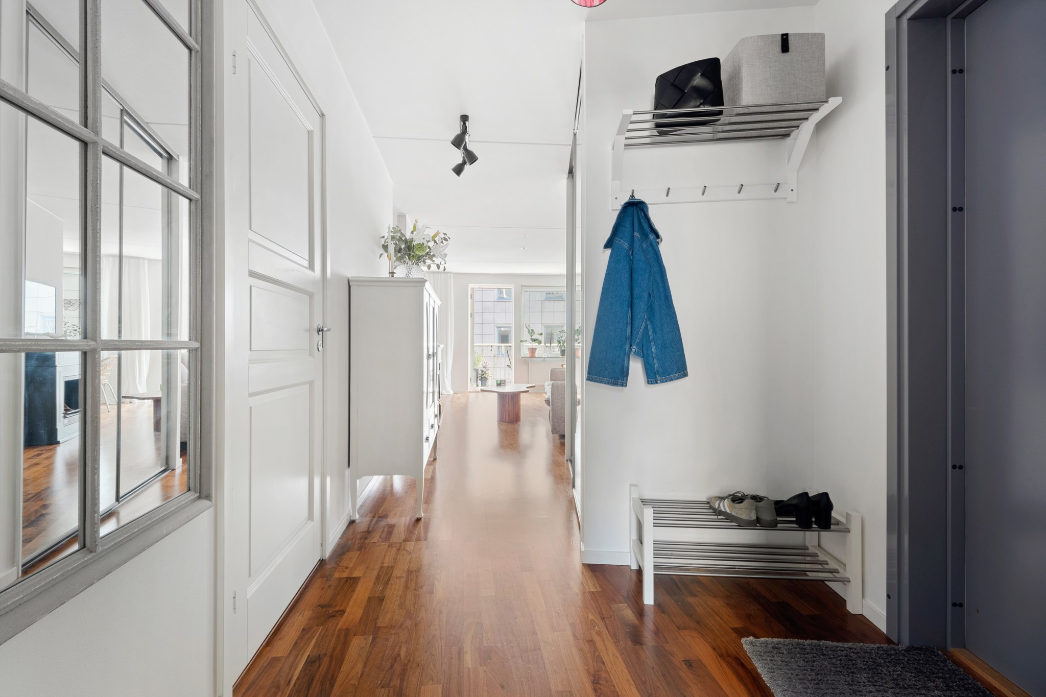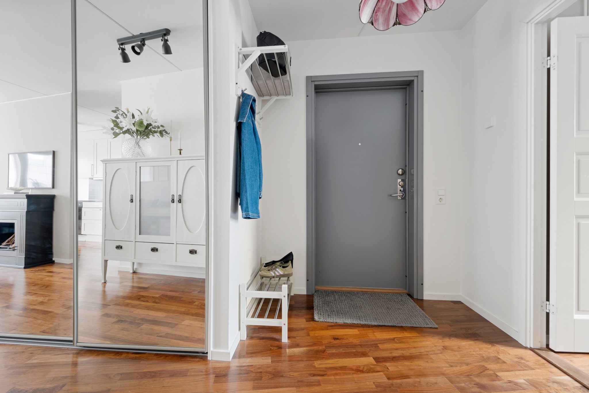 Hallen välkomnar med gott om plats för ytterkläder och skor och ger redan vid första steget en känsla av rymd och harmoni. Lägenheten är i genomgående mycket gott skick och det är bara att flytta in och börja trivas direkt.