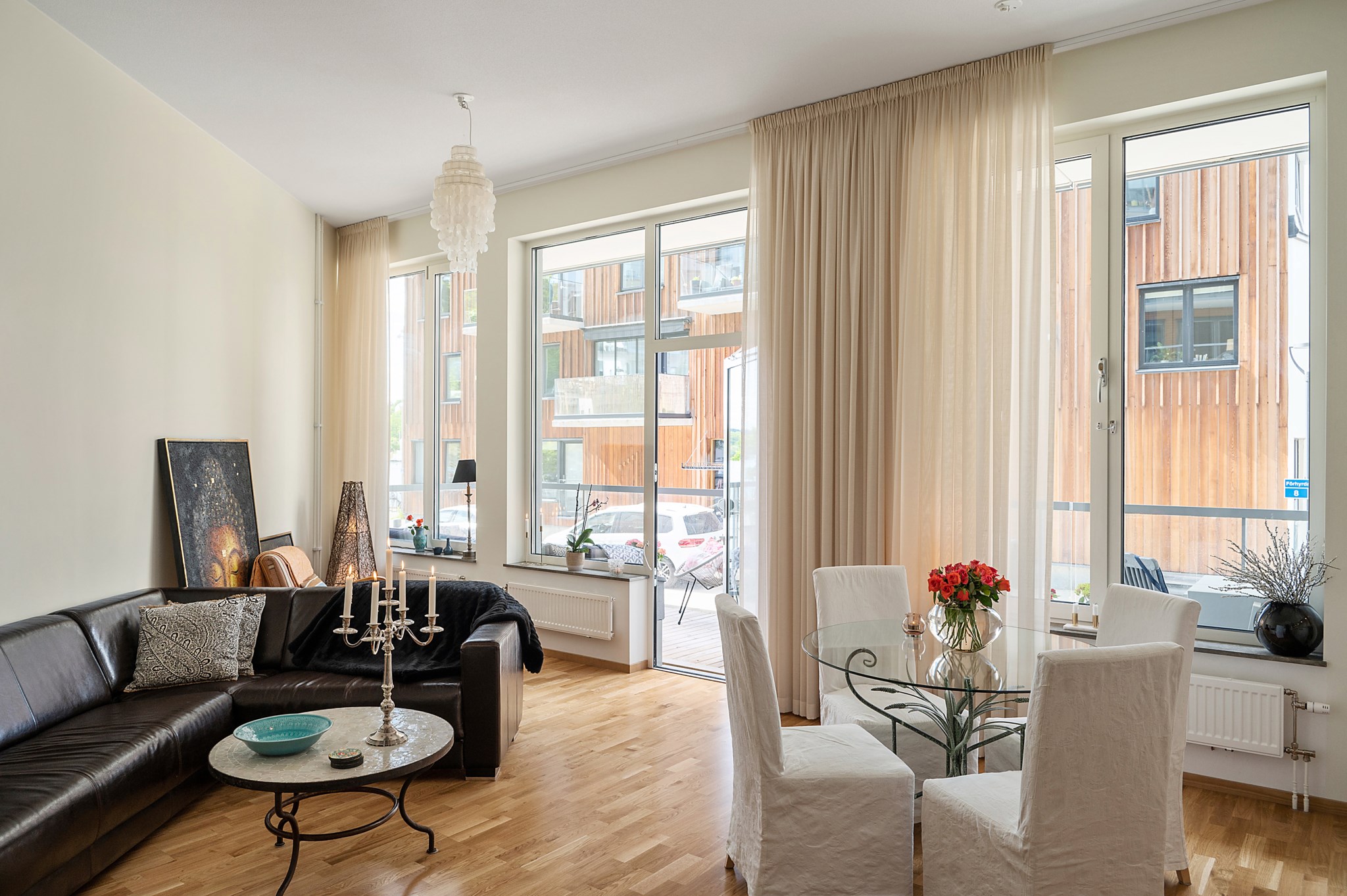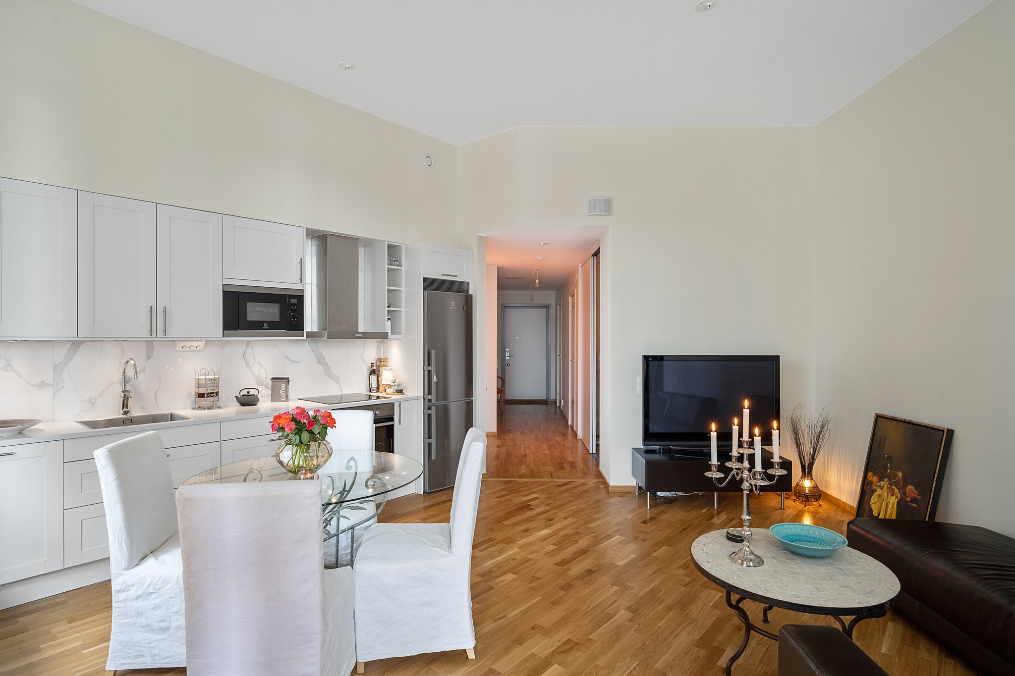Intill Mälarens inlopp ligger denna fantastiska bostad som erbjuder generös takhöjd om 3,40 meter och sjöutsikt. Lägenheten har en otroligt trevlig atmosfär med mycket naturligt ljus och luftiga ytor. Bostaden är optimalt planerad med en stor balkong om 17 kvm i väster som bjuder på eftermiddags- och kvällssol. Du når balkongen från kök och vardagsrum. Vidare präglas lägenheten av en modern disponering i form av stora sociala ytor, en öppen planlösning mellan kök och vardagsrum med lättmöblerade ytor, ett stort badrum med separat tvättdel samt en yteffektiv hall med goda förvaringsmöjligheter. I bostaden finns två omgjorda rum som idag används som sovrum. Här erbjuds stora och generösa fönsterpartier som gör lägenheten så unik. Här kan du njuta av den härliga sjöutsikten över Mälaren dygnet runt och året om genom ett kliv ut på balkongen. Strax utanför bostaden finns badbryggor och klippbad. Till lägenheten tillhör ett stort källarförråd!