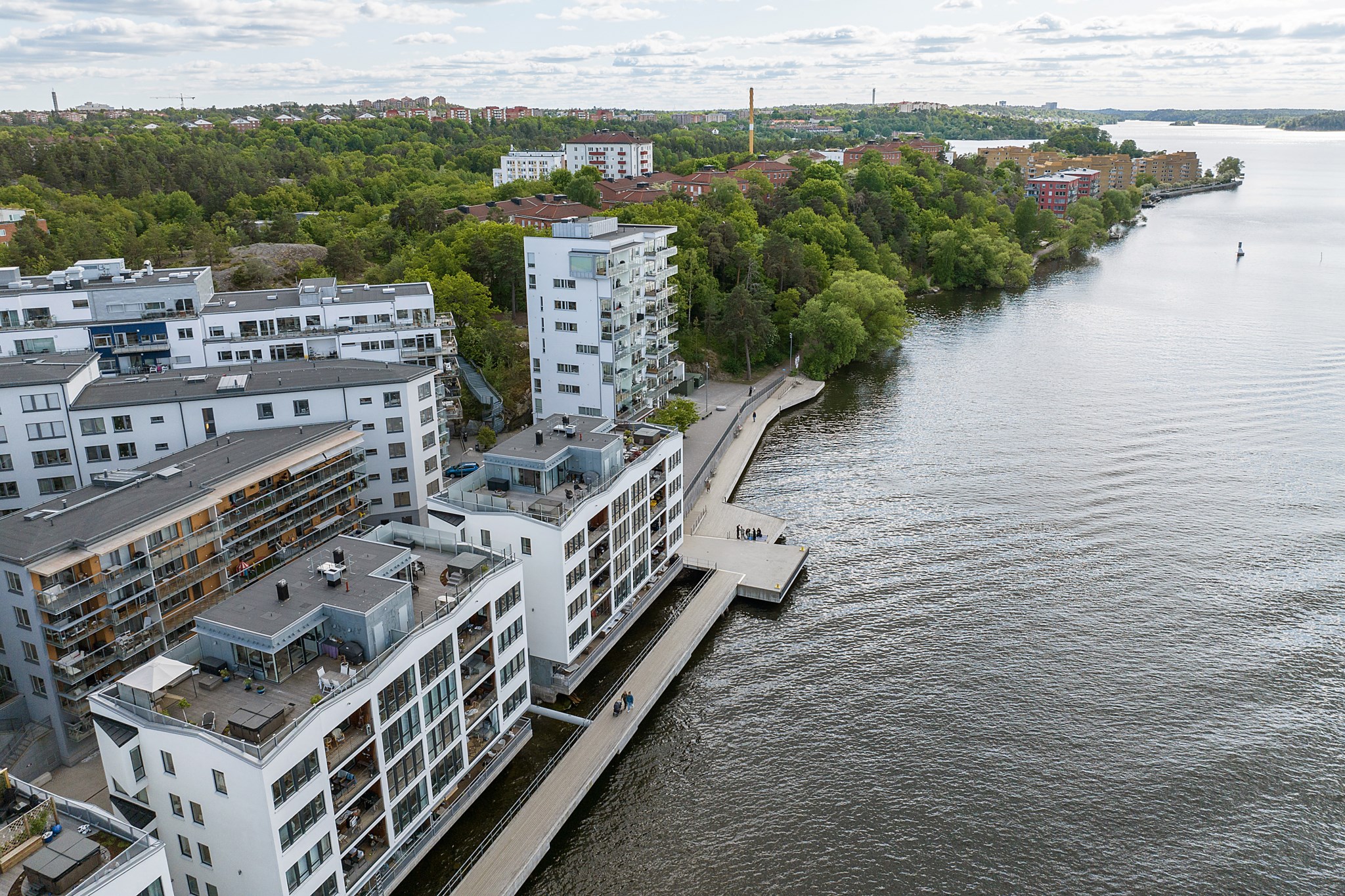 Gröndal Strand är ett mycket lugnt och omtyckt område i närheten av Stockholm City. Det är svårt att finna ett mer barnvänligt och naturnära område – en oas mitt i staden. Närområdet präglas av badplatser, badbryggor, grönska, långa promenadstråk och motionsspår längs med vattnet som utnyttjas både vinter- och sommartid. Med mycket uppskattade grundskolor och många omtyckta förskolor i området kan man som förälder känna sig trygg. En kort promenad tar dig till Gröndals centrum eller till vackra Vinterviken, det pittoreska Trädgårdscaféet med omgivande kolonilotter eller kulturutbudet på närliggande Färgfabriken. Gröndal bjuder på kommunikationer i form av buss, spårvagn och pendelbåt (SL båtlinje 89). Bussturen tar ca 8 minuter till Liljeholmens centrum där tunnelbanan eller tvärbanan tar dig vidare in till stan. Pendelbåtlinjen tar dig med en kort båttur in till Stadshuset, Mälarhöjdsbadet eller Drottningholm. Med bil når du snabbt Essingeleden, Liljeholmens Galleria och Stockholm City.