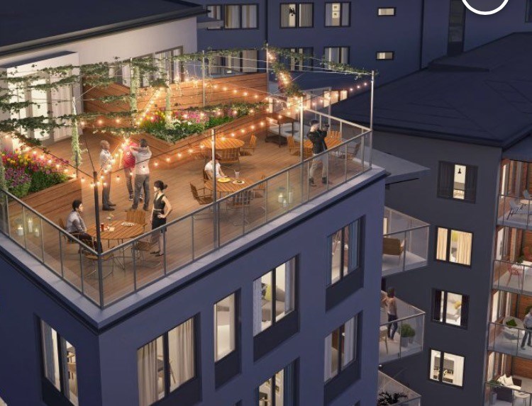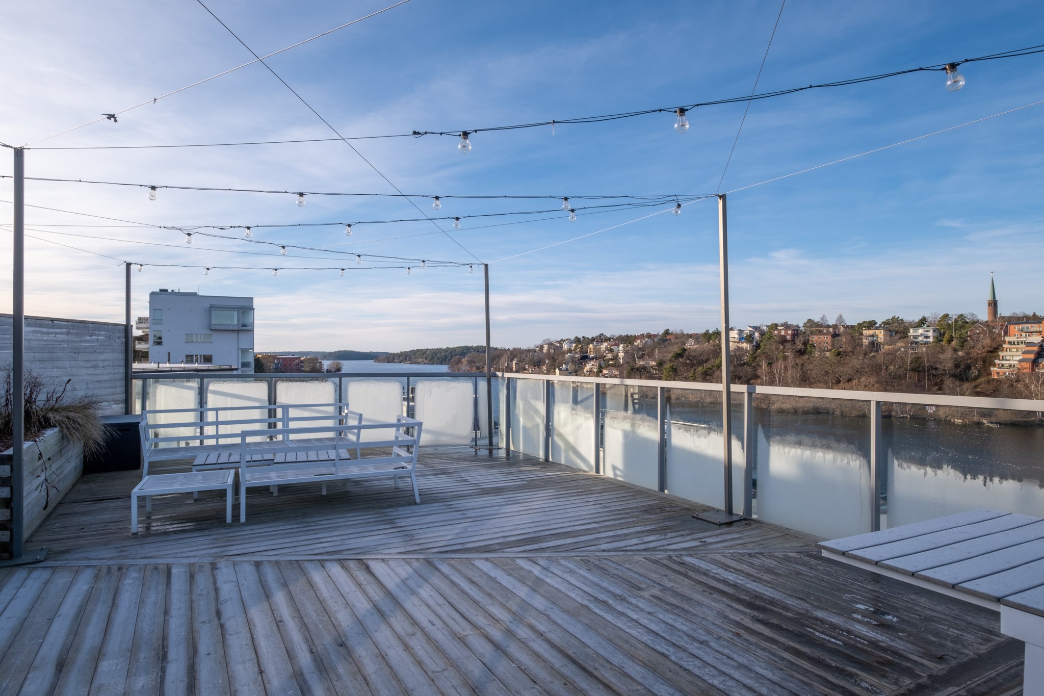 Föreningen har en gemensam takterrass som erbjuder magisk utsikt över Mälaren!