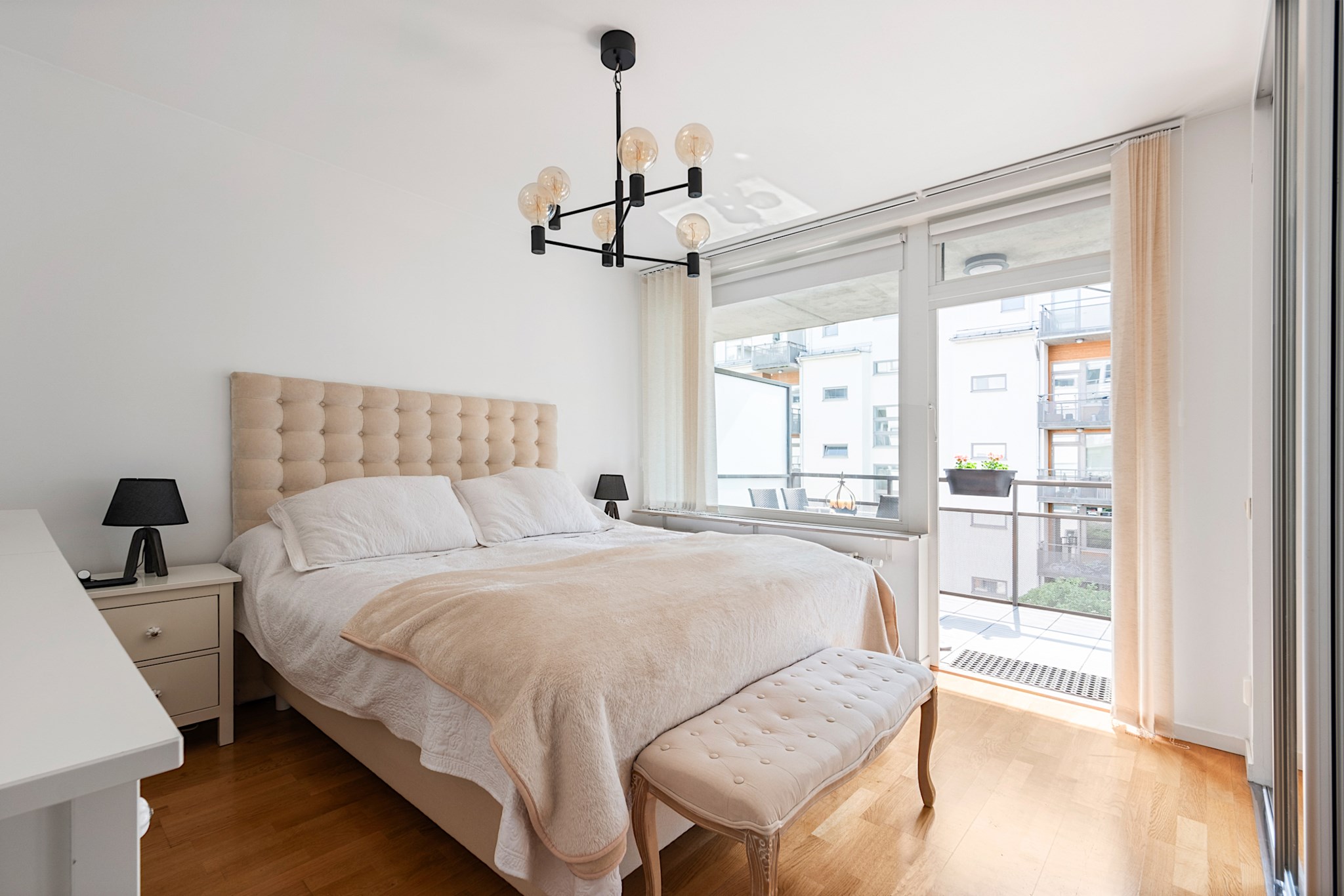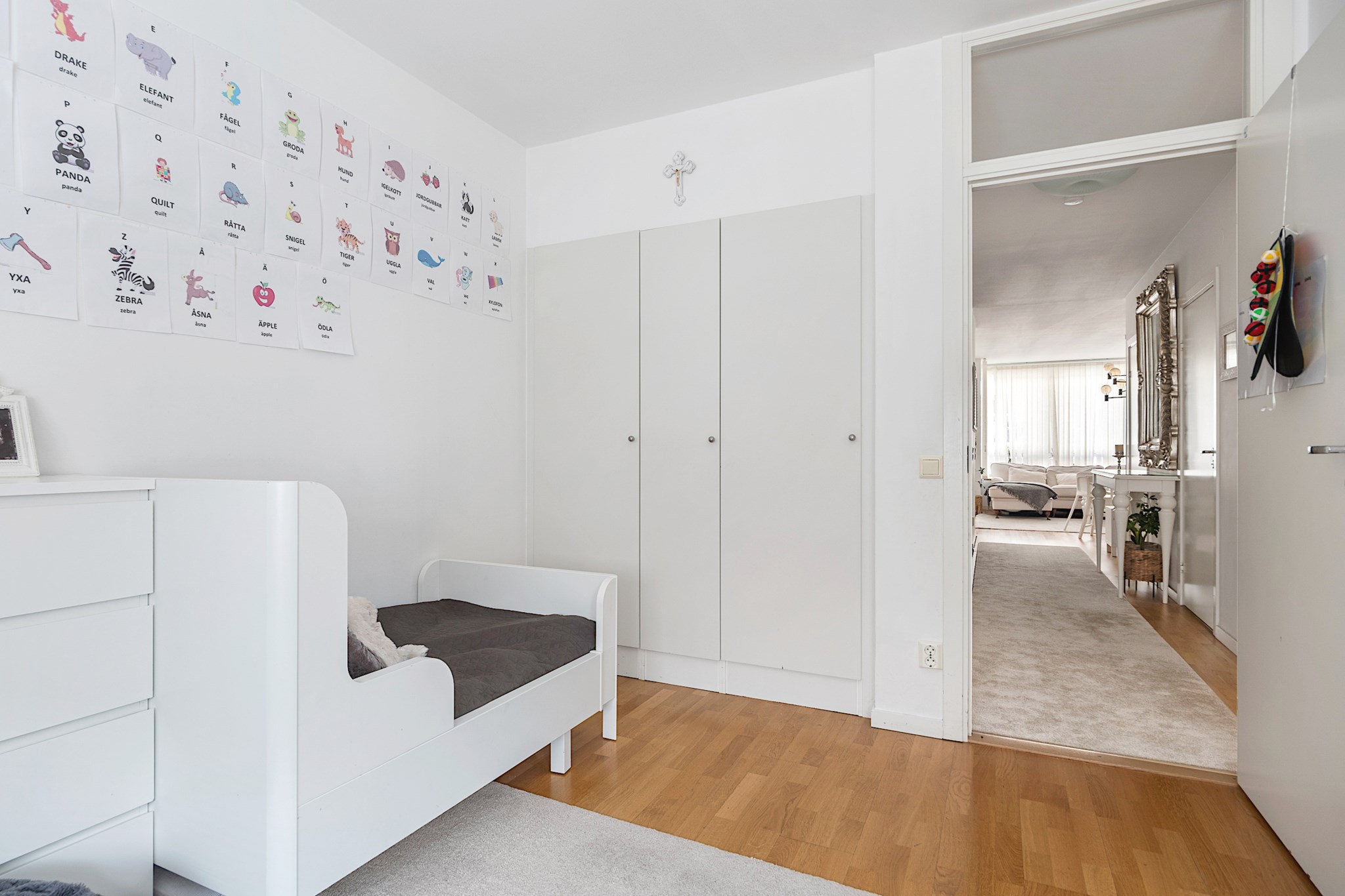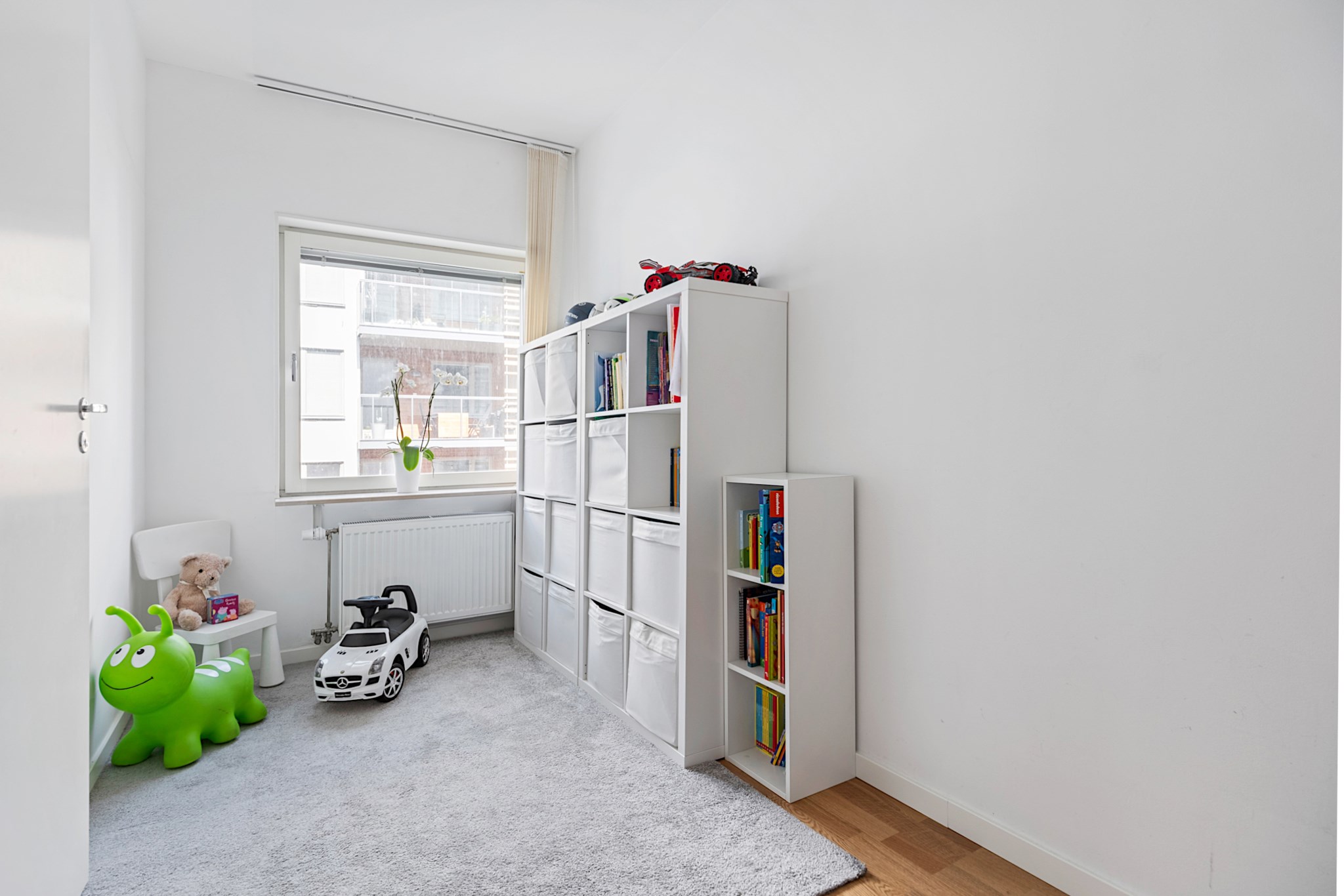 Sovrumsdelen rymmer tre lugna och luftiga rum, varav två vetter mot den lummiga innergården. Master bedroom erbjuder gott om plats för dubbelsäng och garderober. Här har ni access till lägenhetens största balkong. De övriga rummen lämpar sig perfekt som barnrum, gästrum eller hemmakontor.