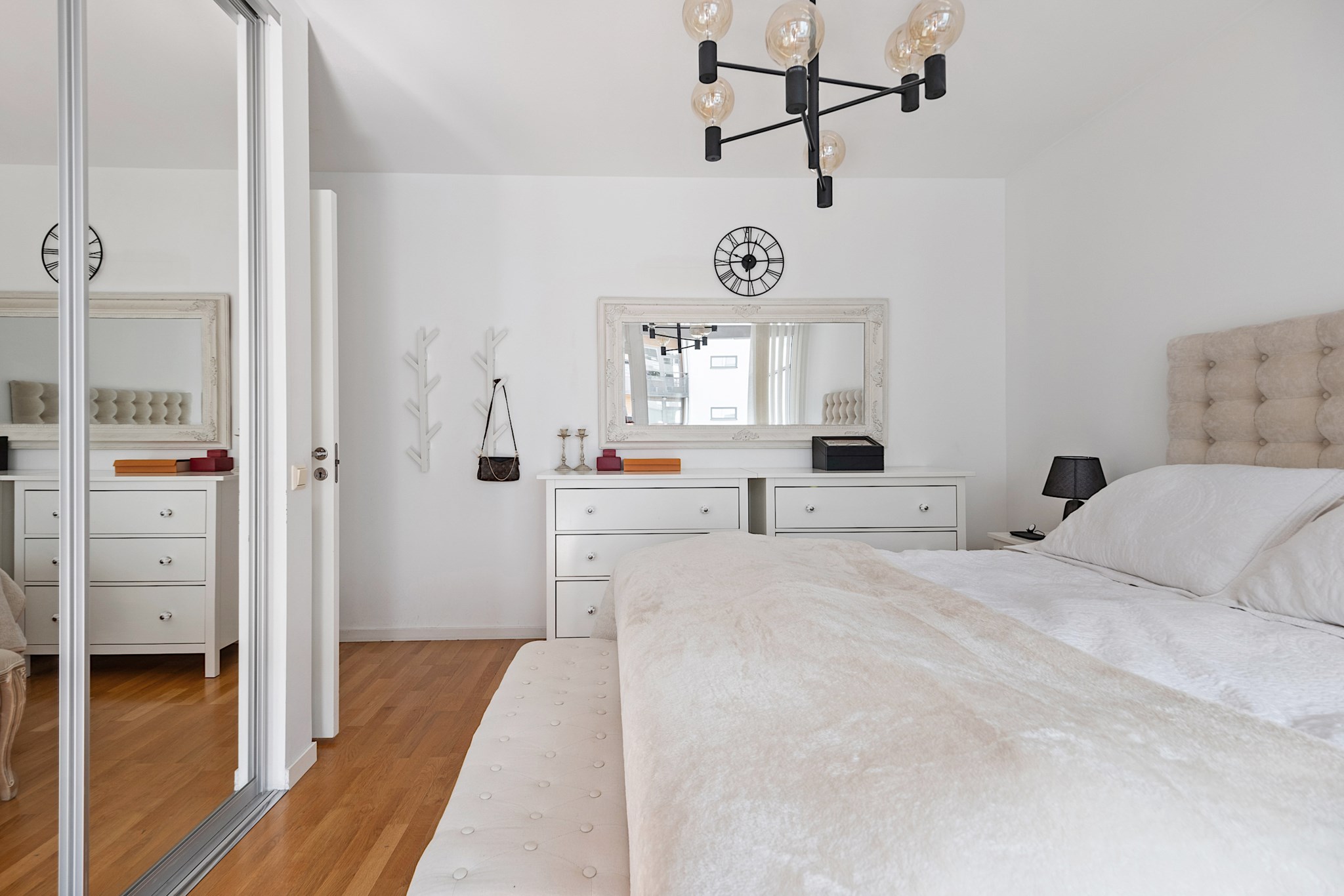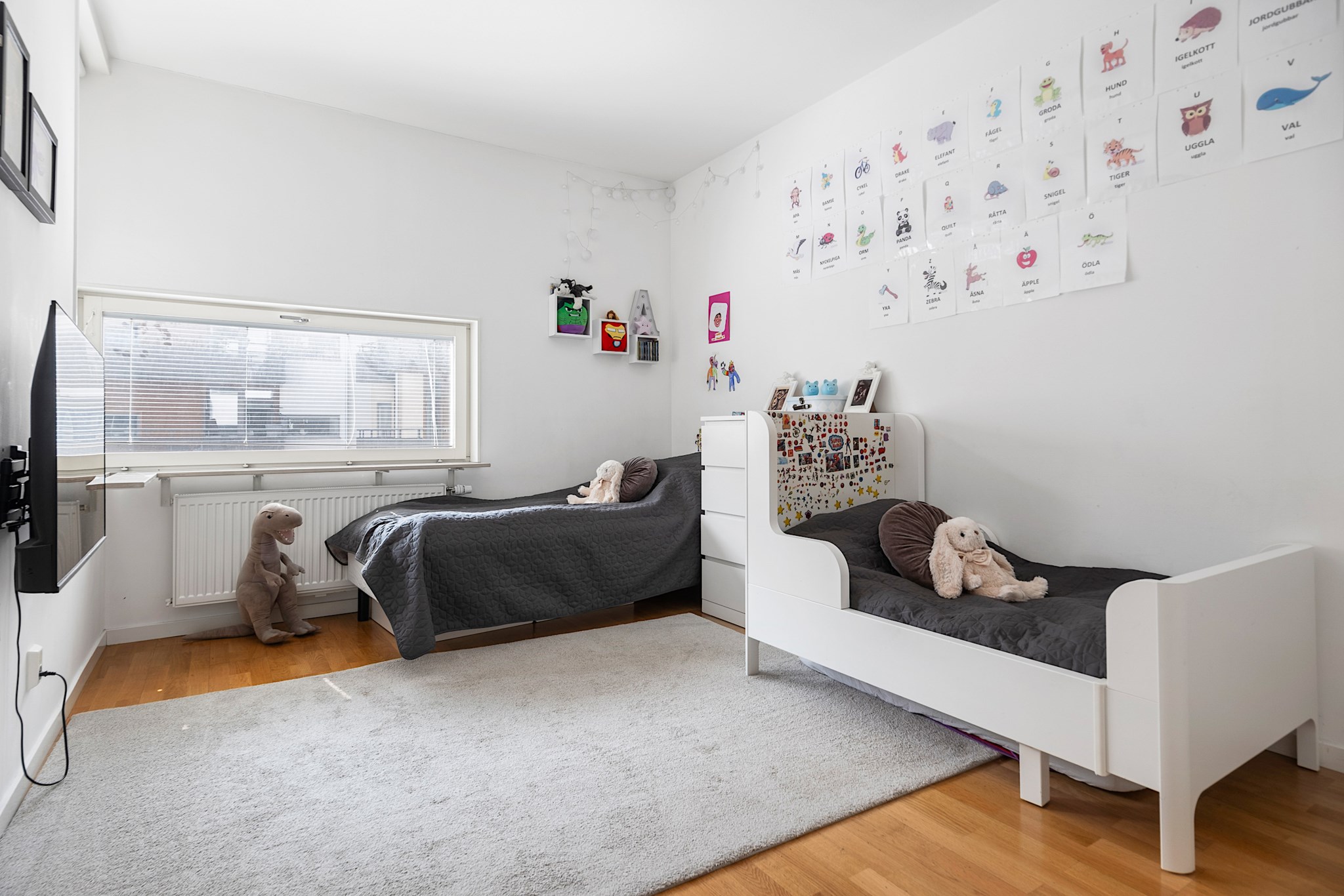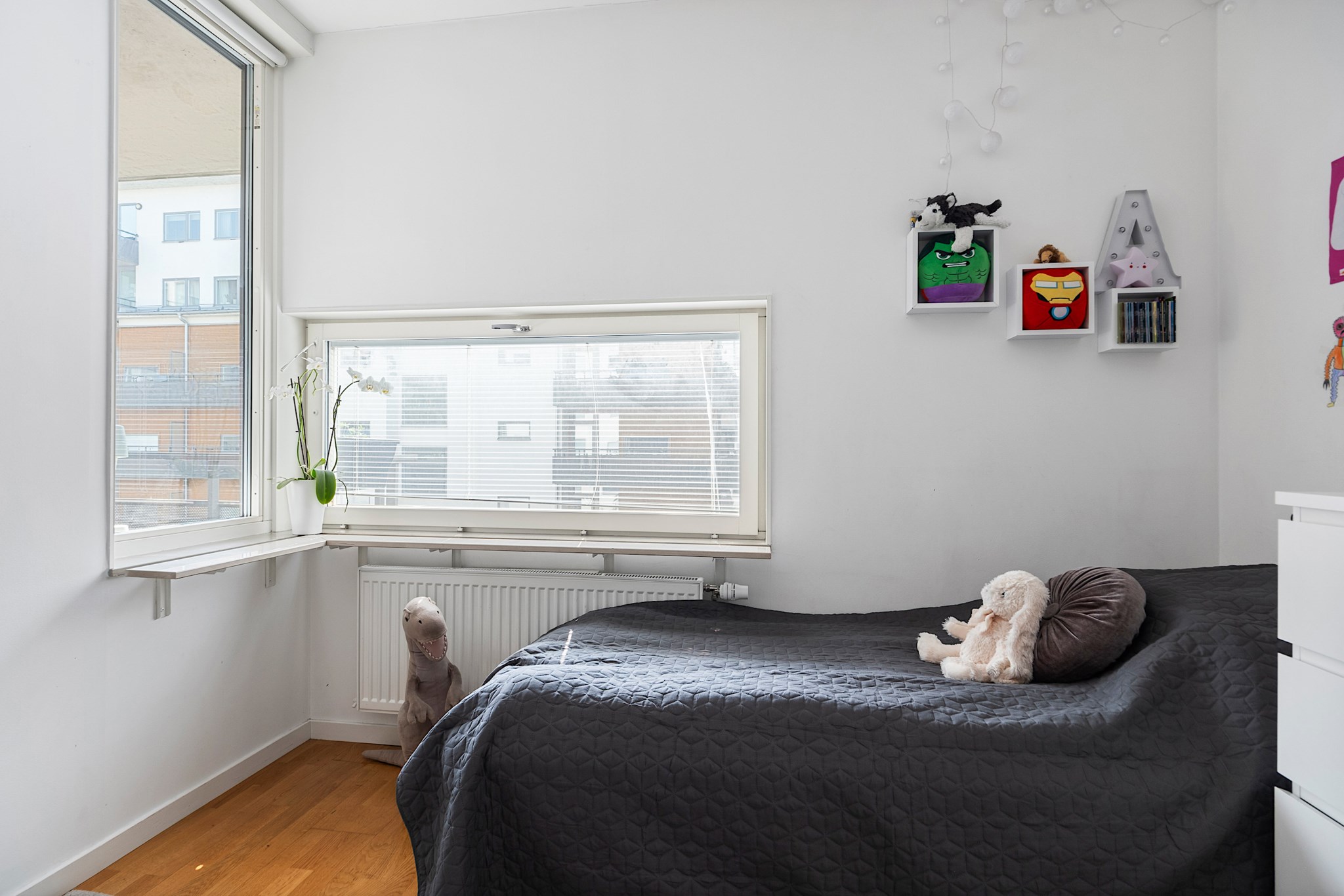 Sovrumsdelen rymmer tre lugna och luftiga rum, varav två vetter mot den lummiga innergården. Master bedroom erbjuder gott om plats för dubbelsäng och garderober. Här har ni access till lägenhetens största balkong. De övriga rummen lämpar sig perfekt som barnrum, gästrum eller hemmakontor.