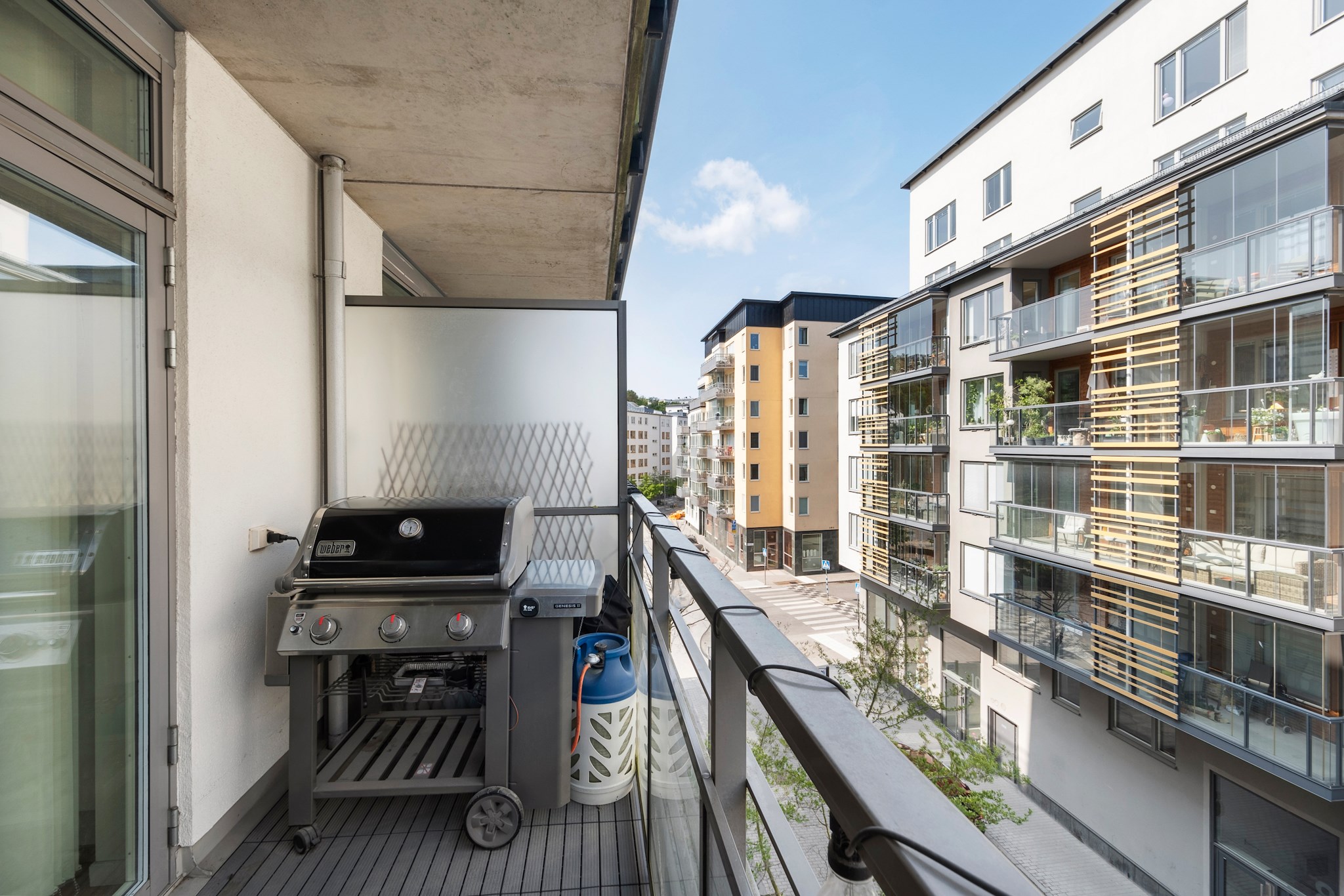 Attraktivt belägen invid flertalet parker, grönområden, tvärbana, och Mälarens vatten. Området erbjuder även mycket bra service och stort utbud av bra matbutiker, skolor, dagis, restauranger, caféer, gym m.m. I närheten finner ni en bra och välsorterad matbutik. För den som söker ännu större utbud så finns Liljeholmens stora galleria på ca 5 minuters promenadavstånd. Södermalm nås från två håll. Via cykelhissen i Brohuset som tar er smidigt upp till Årstabron och över Söder. Eller via Liljeholmsbron till Hornstull. Det finns även en trappa upp till Årstabron. Denna väg tar ni er även till Årstabergs pendeltågsstation på cirka 11 minuter.