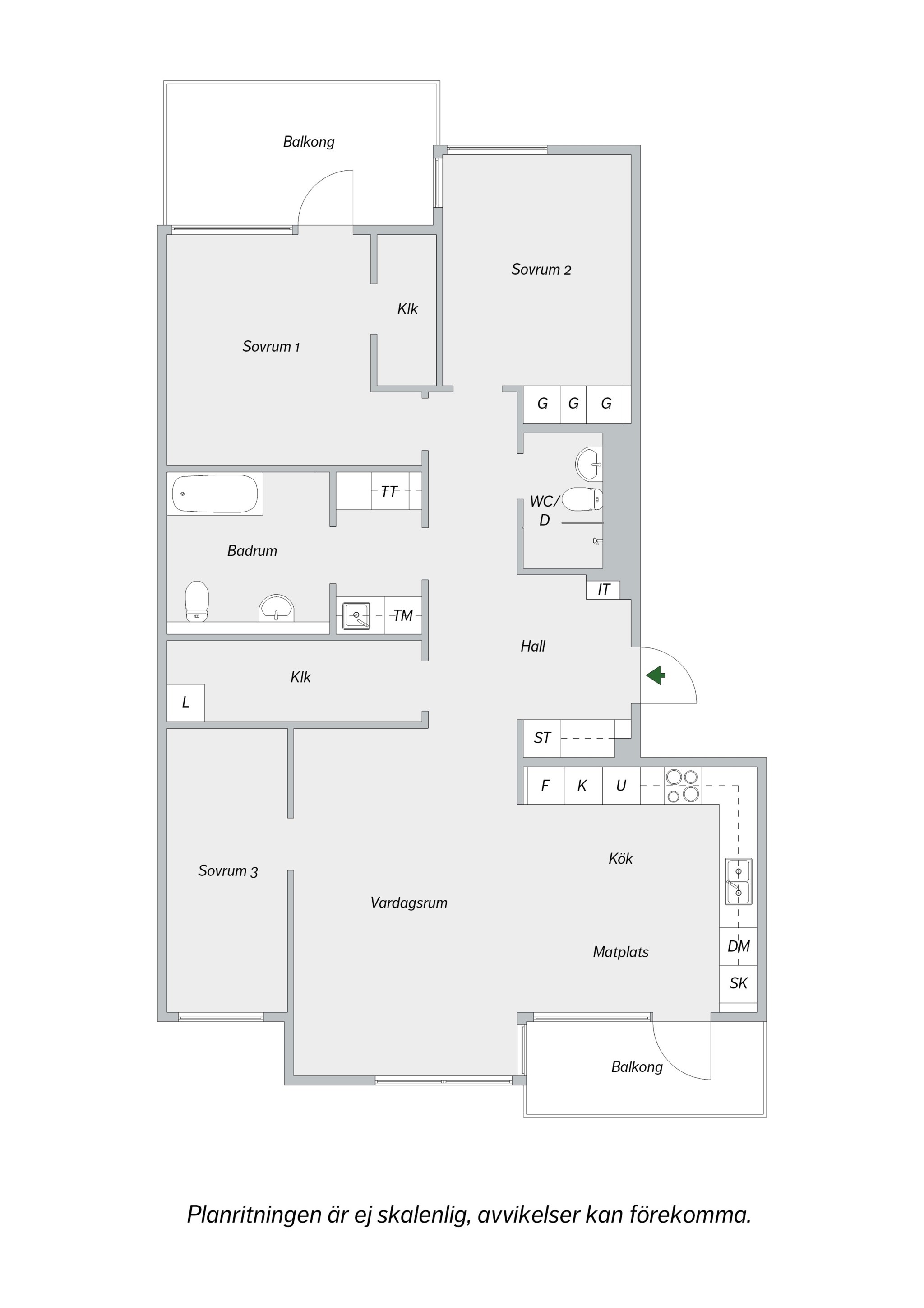 Boarea kan variera beroende på olika uppmätningsnormer. Huruvida uppgiften stämmer med dagens mätmetod kan inte garanteras. Köparen uppmanas att om det är av stor vikt för honom/henne, kontrollera bostadslägenhetens boarea före köpet som ett led i sin undersökningsplikt.