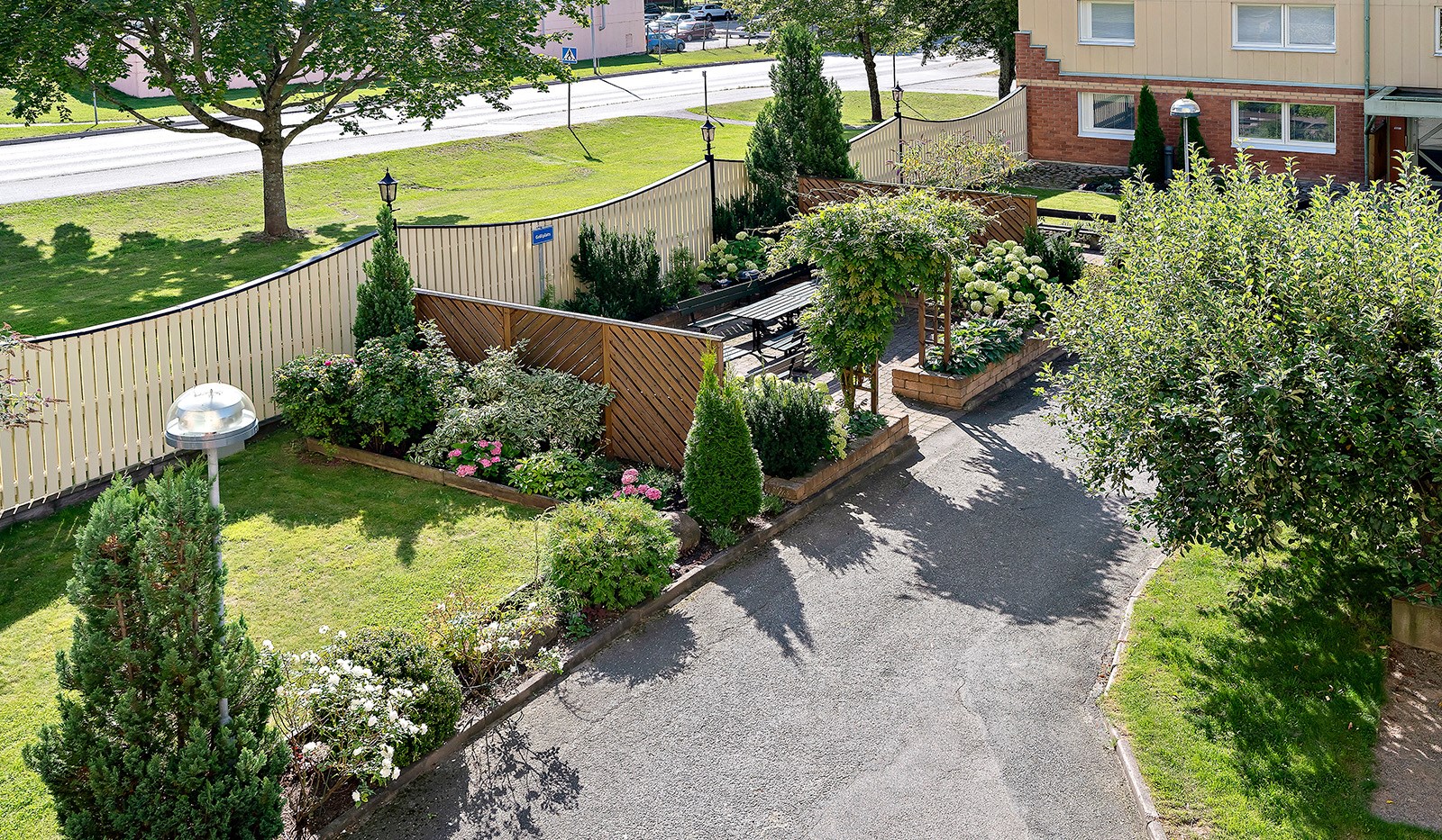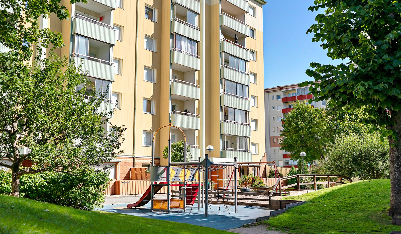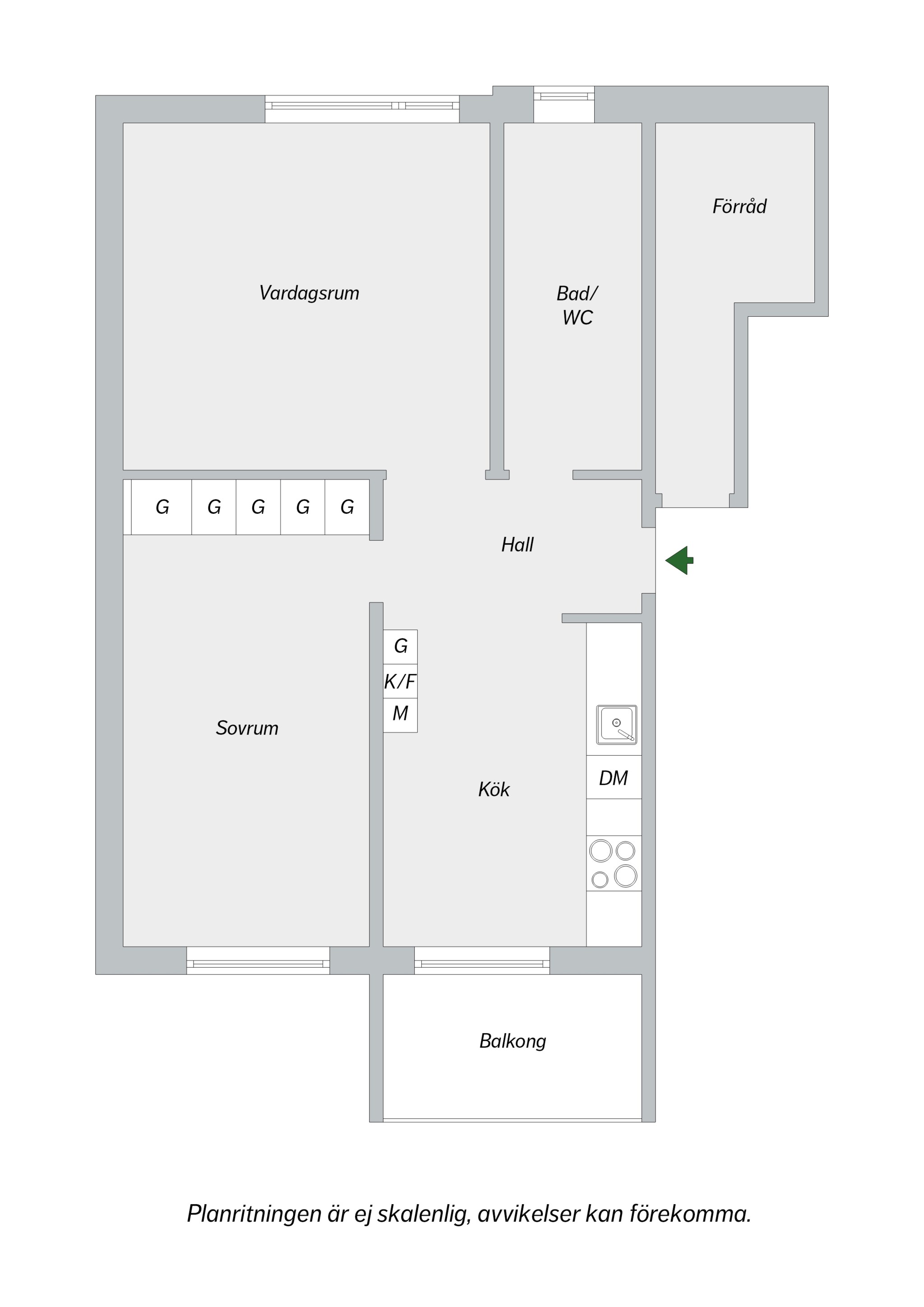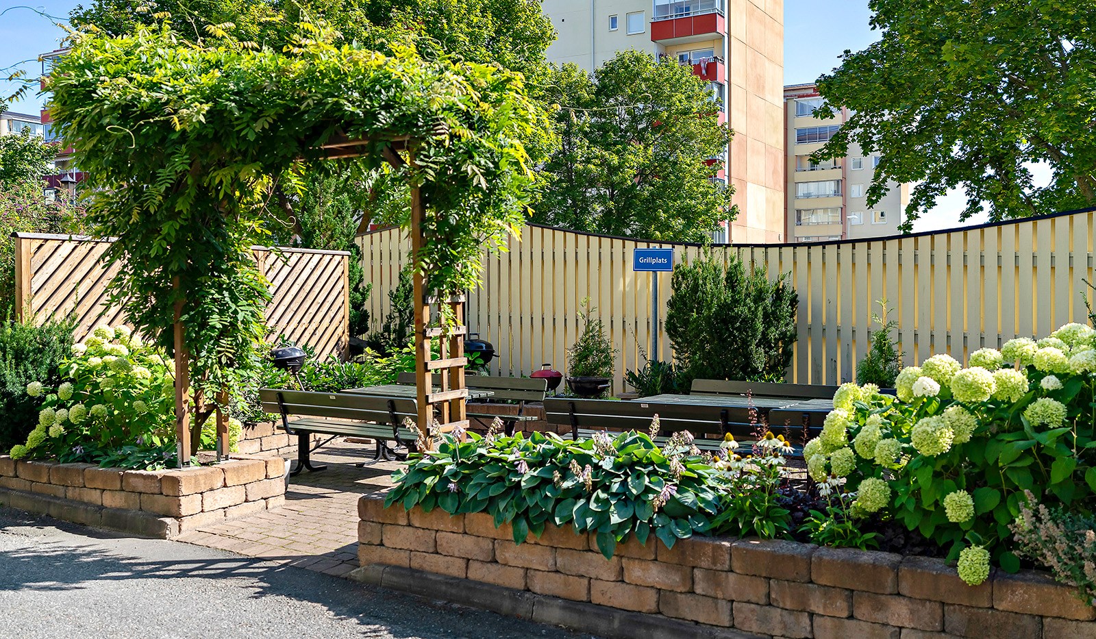 Utanför lägenhetens entré finns ett tillhörande förråd som ingår i månadsavgiften.
