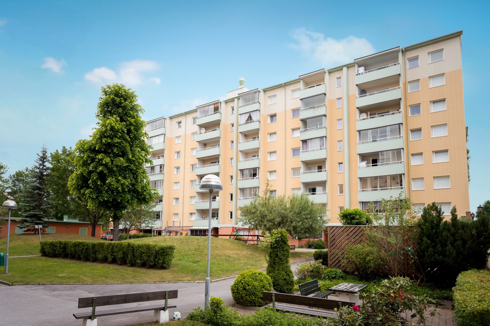 Lägenheten har 2 st tillhörande förråd utanför entrén som ingår i månadsavgiften. Det stora förrådet är avdelat med grannens men med separat ingång och det andra förrådet är ett litet eget förråd.