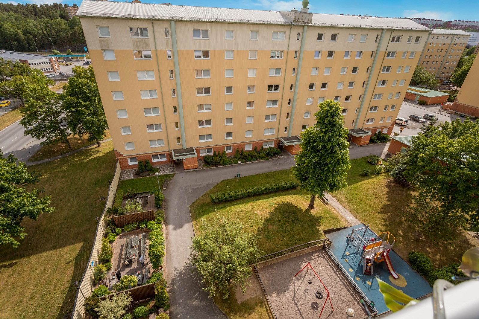 En rymlig och välplanerad 4:a belägen högst upp i huset med genomgående planlösning. På den stora balkongen som vetter i söderläge kan man njuta av solen under större delen av dagen och beskåda den fina utsikten. Bostaden är i gott skick med fina ytskikt samt stilrent fullutrustat kök. Dessutom är lägenheten utrustad med både helkaklat badrum och gäst-wc. Det höga läget i kombination med stora fönster ger ett härligt ljusinsläpp. Bostadens planlösning bjuder på rymliga sociala ytor, tre ordentliga sovrum och gott om förvaringsutrymme.