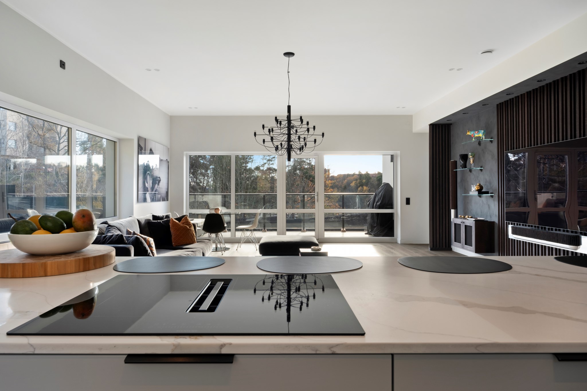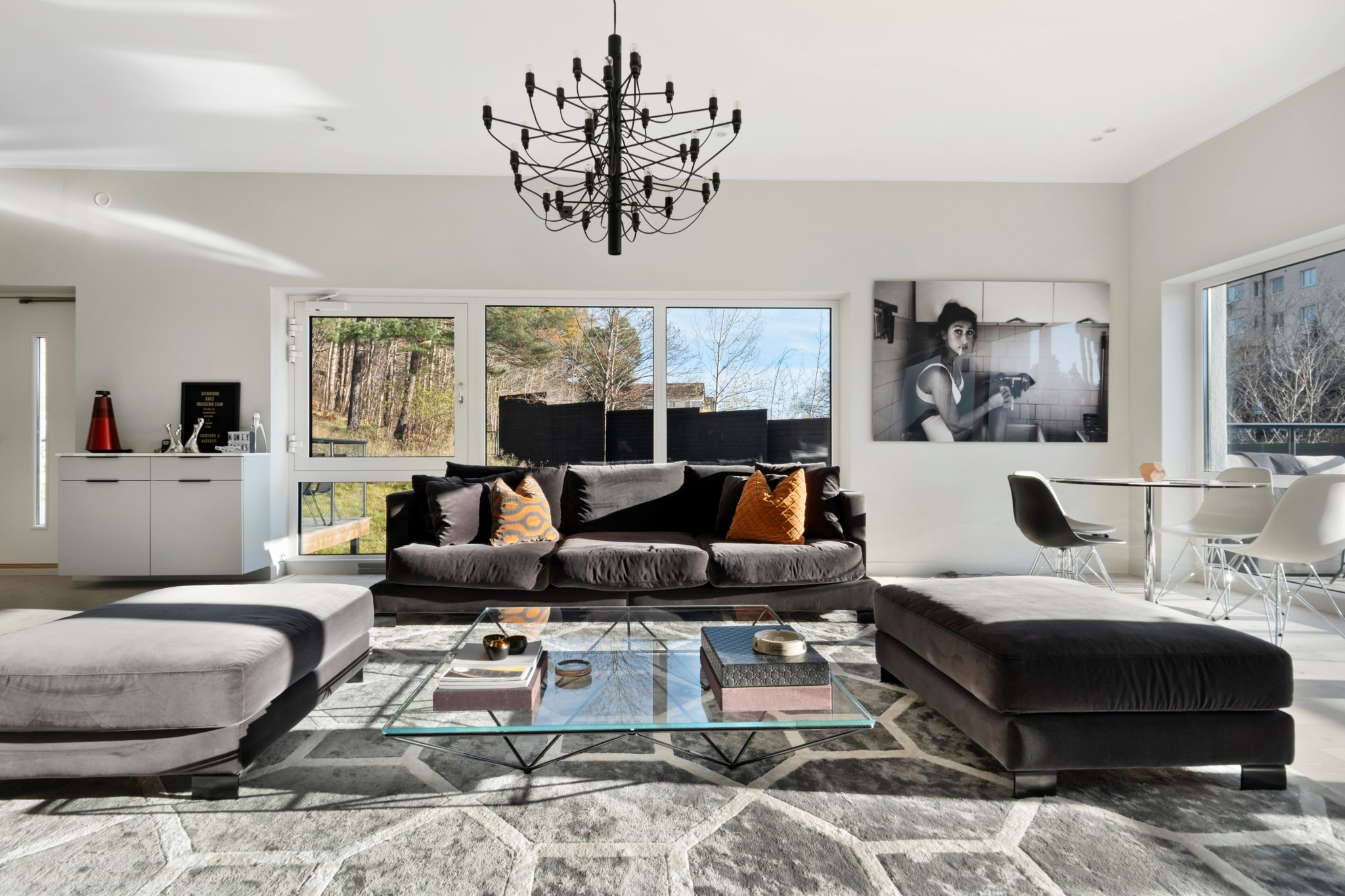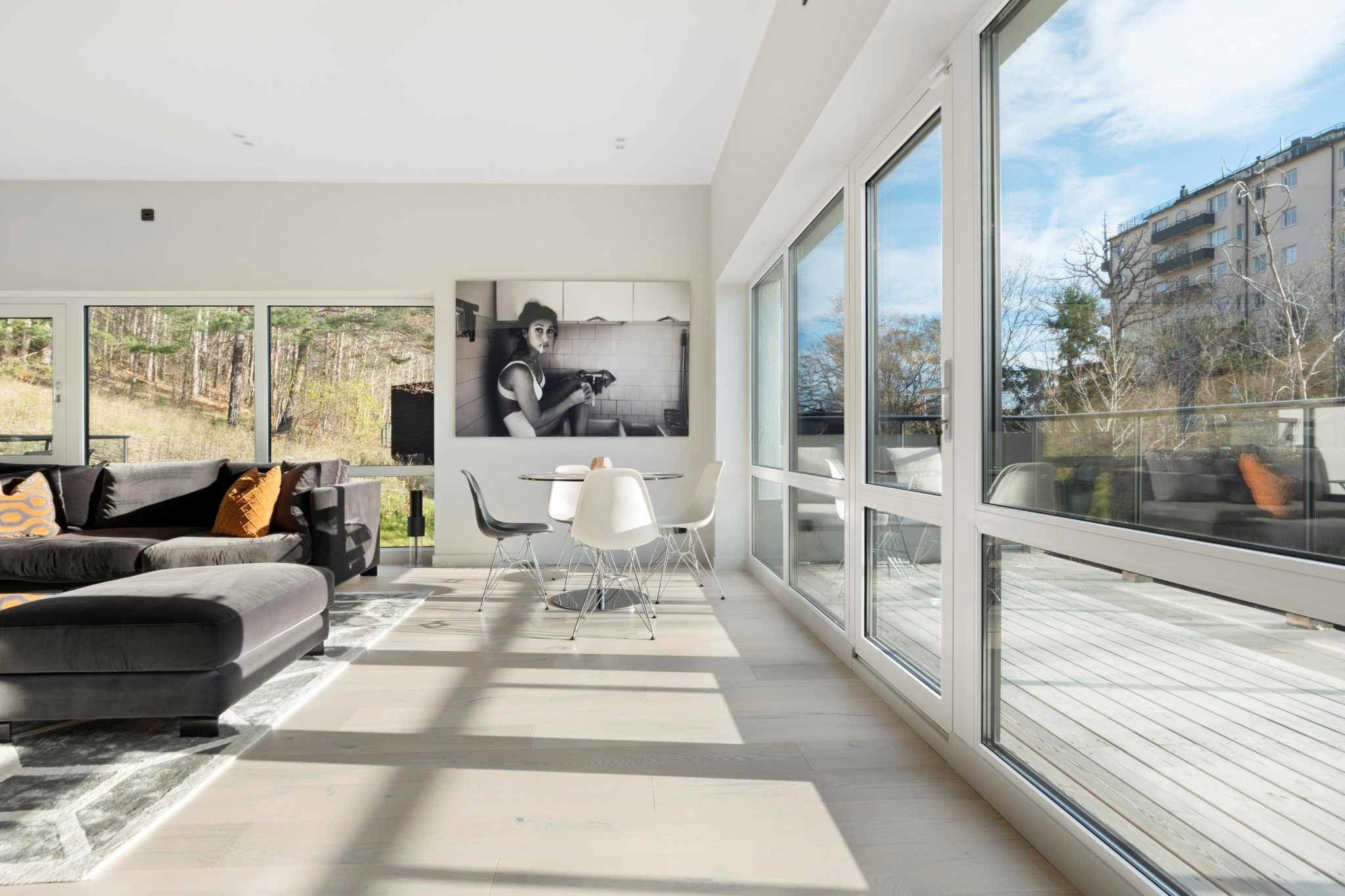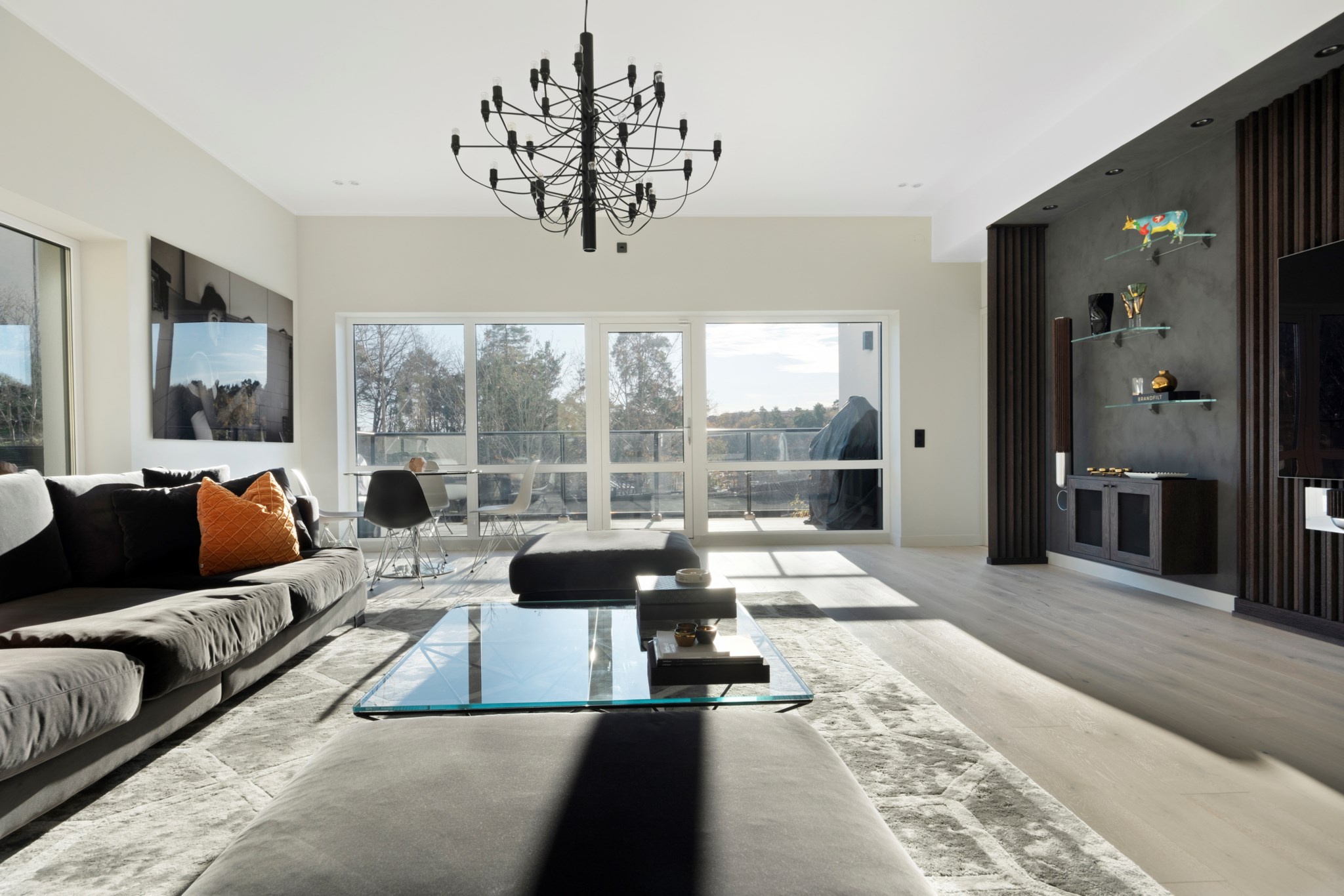 Detta är en lägenhet med stilren design, stora glaspartier och underbar utsikt. Ett drömboende utöver det vanliga!