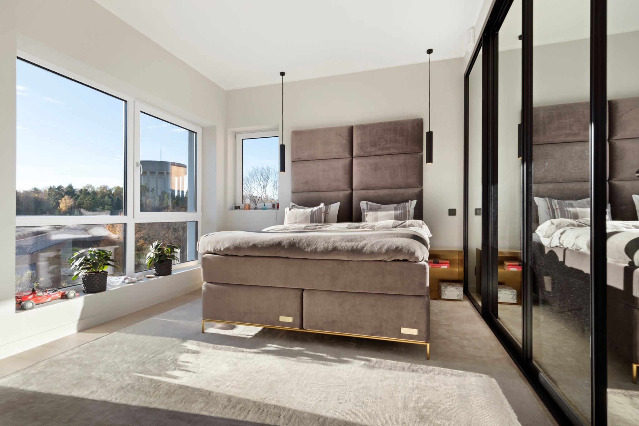Ett förstklassigt boende om 4 rum i en fantastisk våning högst upp om 123kvm med en härlig södervändterrass som erbjuder en underbar utsikt över Stocksundet. Bostaden är i exklusiv design med materialval av högsta kvalitet. Svårslagen atmosfär och med ett fantastiskt ljusinsläpp. Väldisponerad våning om 123 kvm fördelat på generösa sällskapsytor, master bedroom samt två sovrum med mycket bra förvaring, kök i öppen planlösning, två badrum, ena med dubbeldusch, tvättavdelning och goda förvaringsmöjligheter.