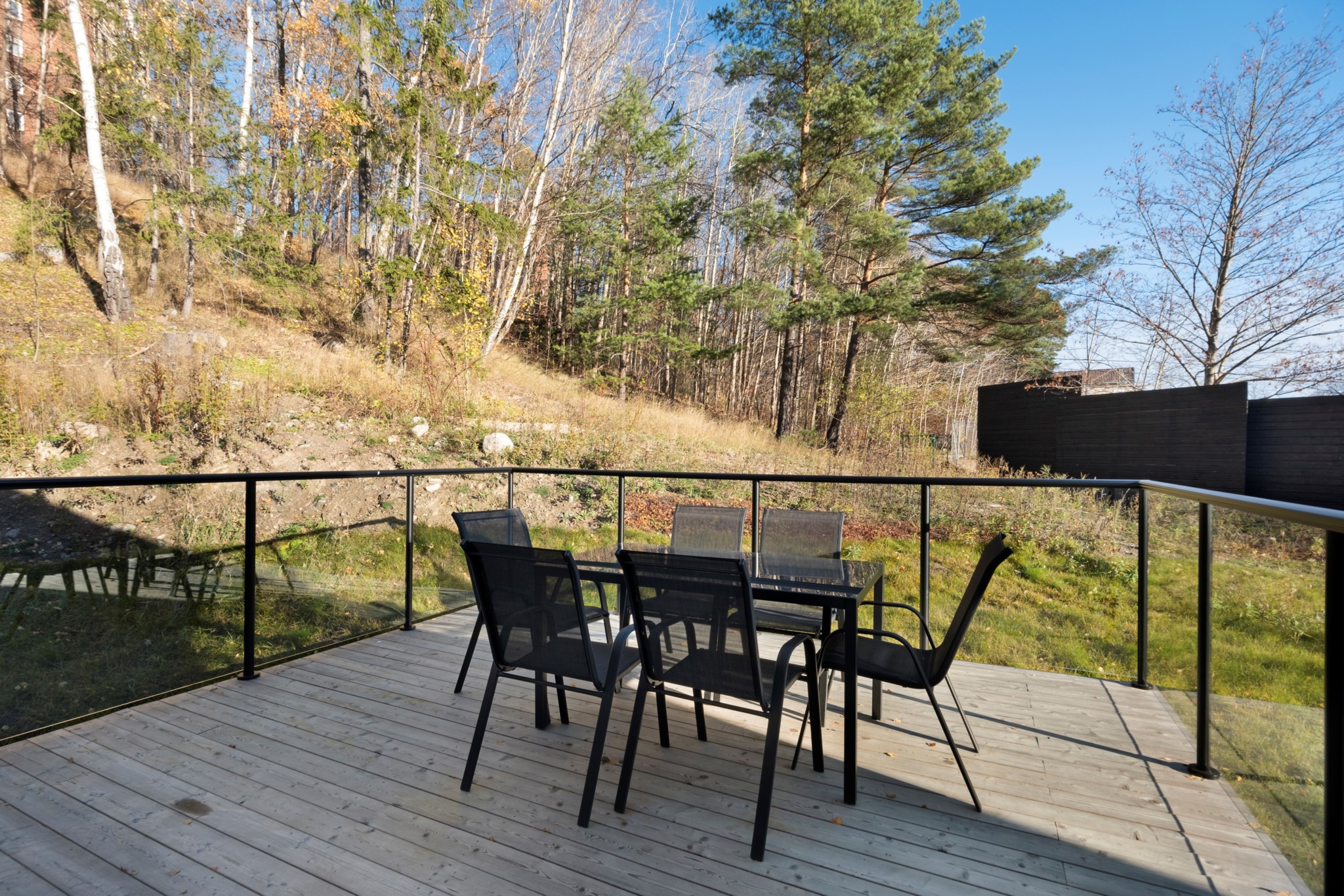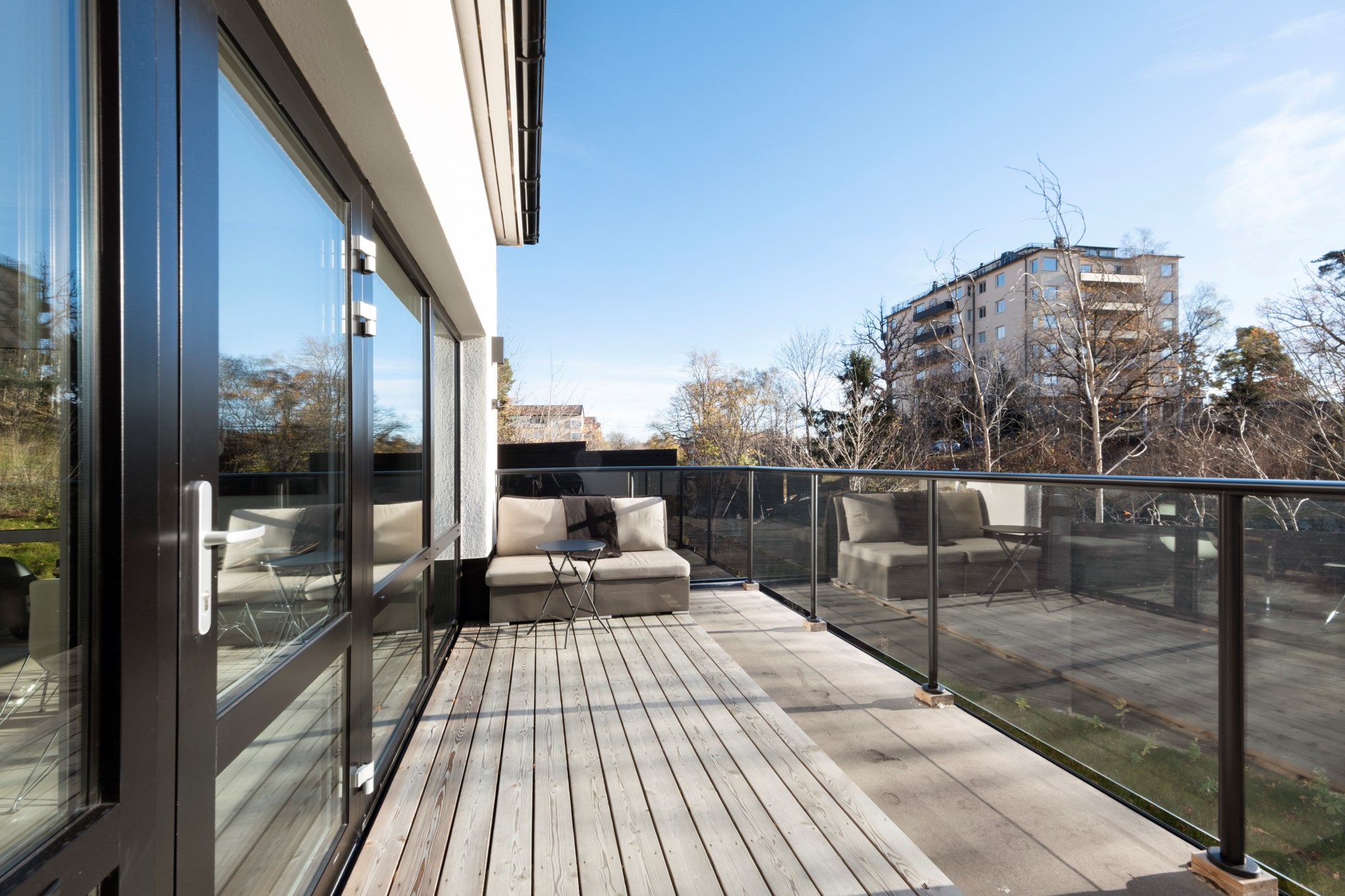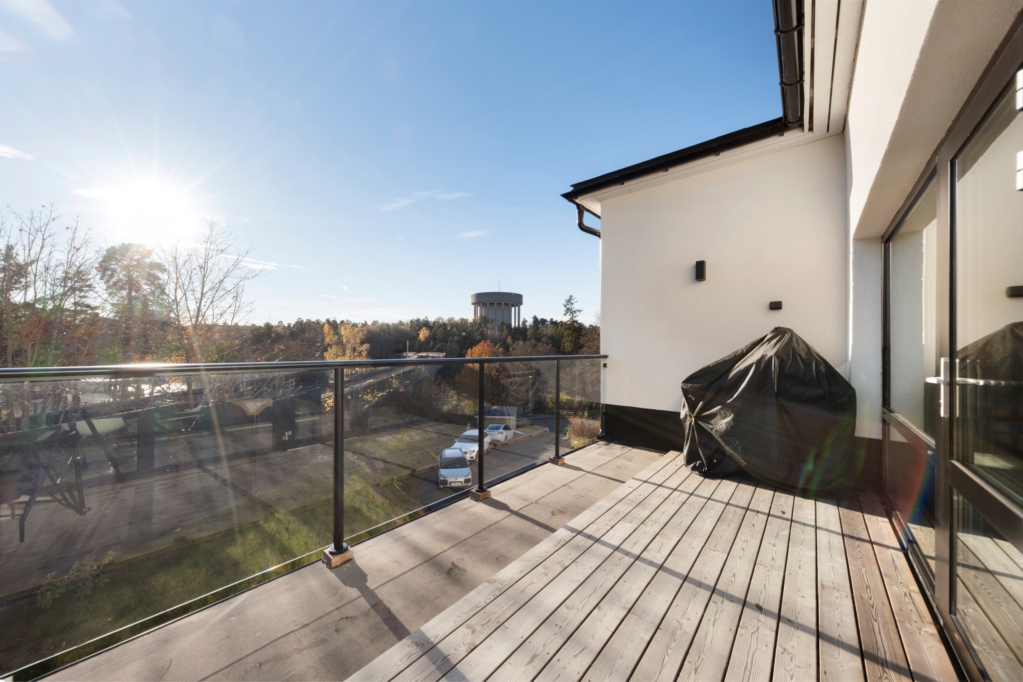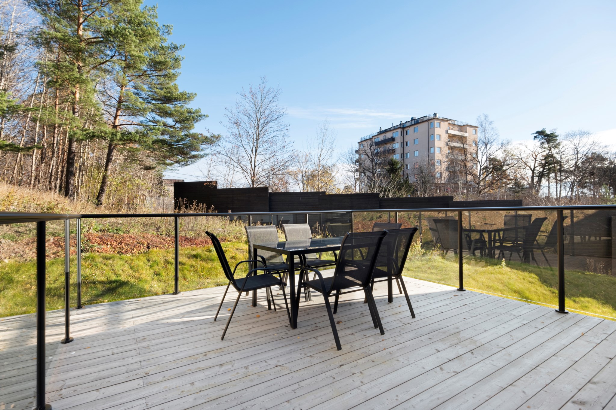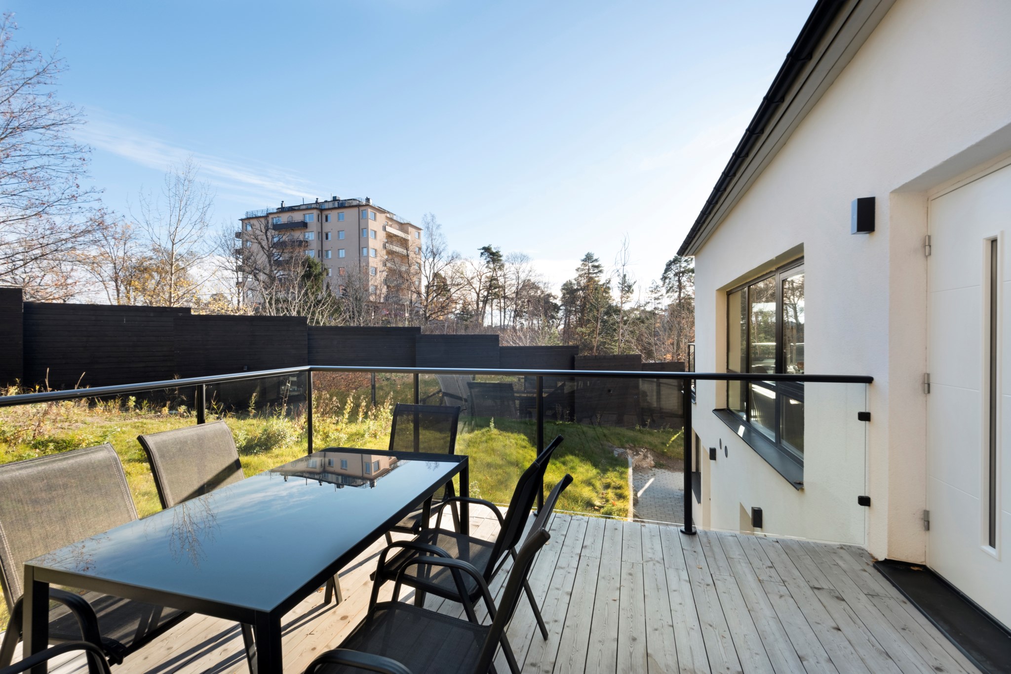 Stor södervänd terrass med underbar utsikt över Stocksundet.