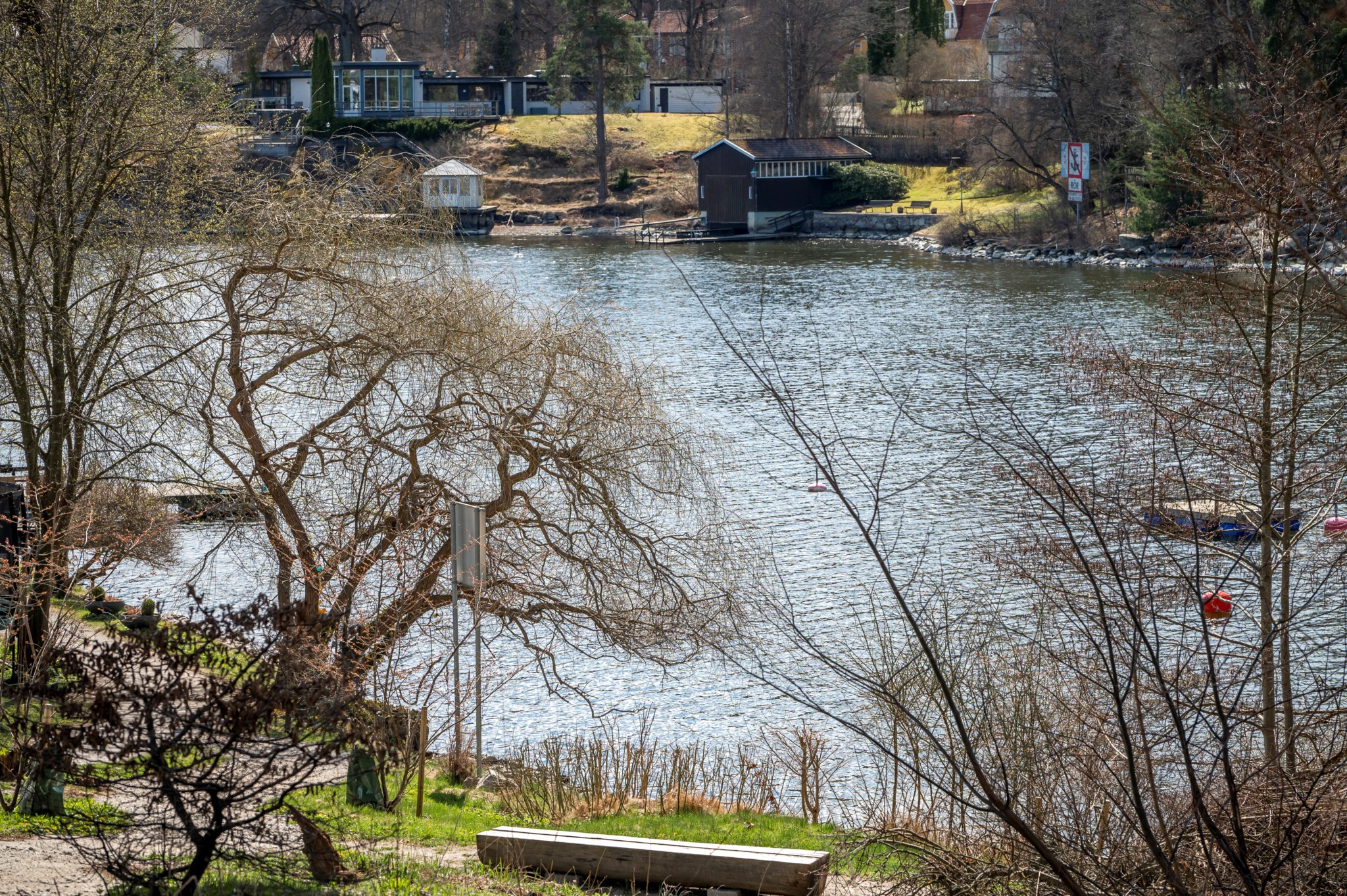 Ett stenkast bort finns en badplats för ett härligt morgon- eller kvällsdopp, fina motionsstråk längs vattnet och på några få minuters promenadavstånd finns både T-bana ( ca 10 minuter till Östermalmstorg) och buss. I närheten finns matbutik, restauranger samt café.