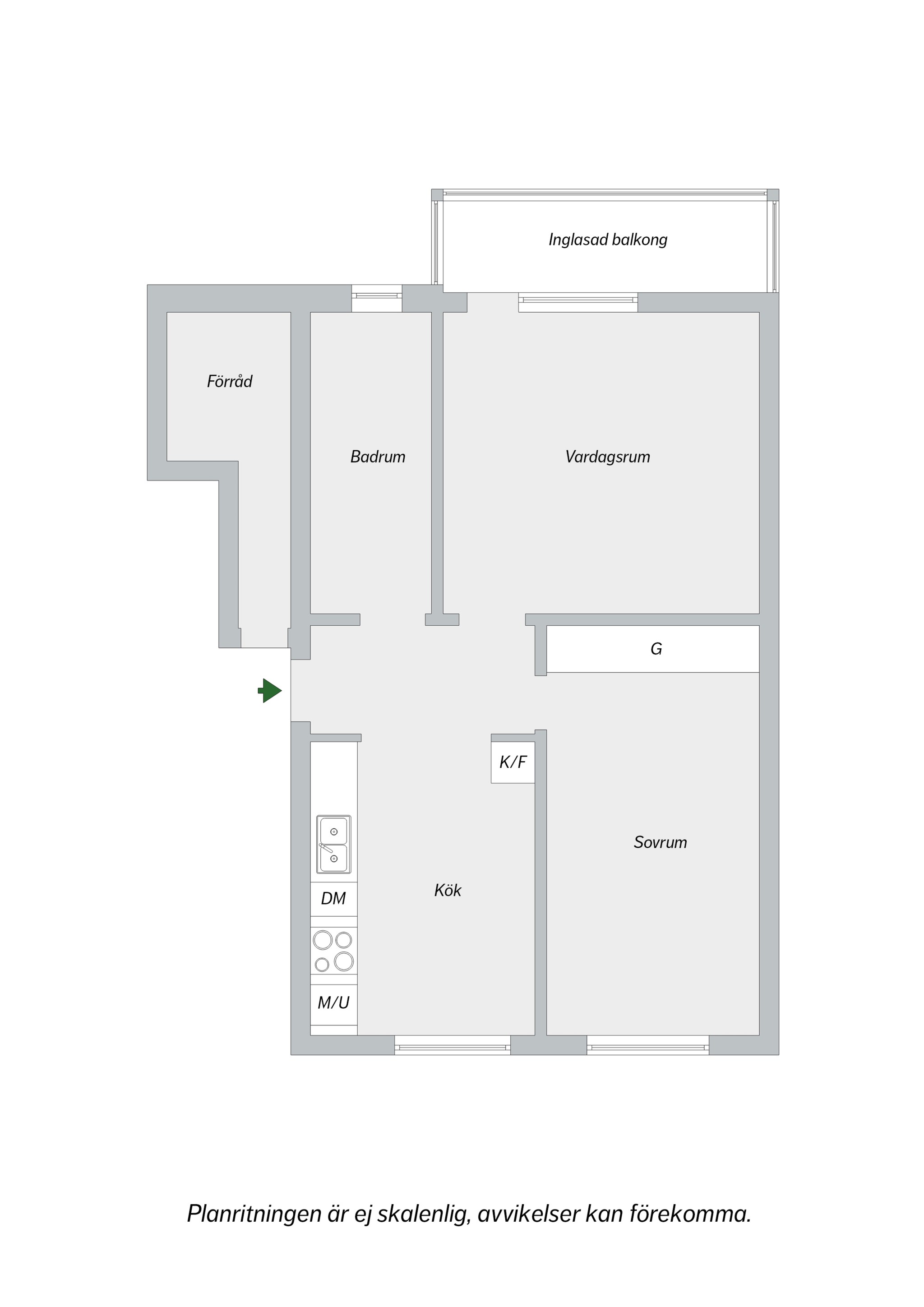 Utanför lägenhetens entré finns ett tillhörande förråd som ingår i månadsavgiften