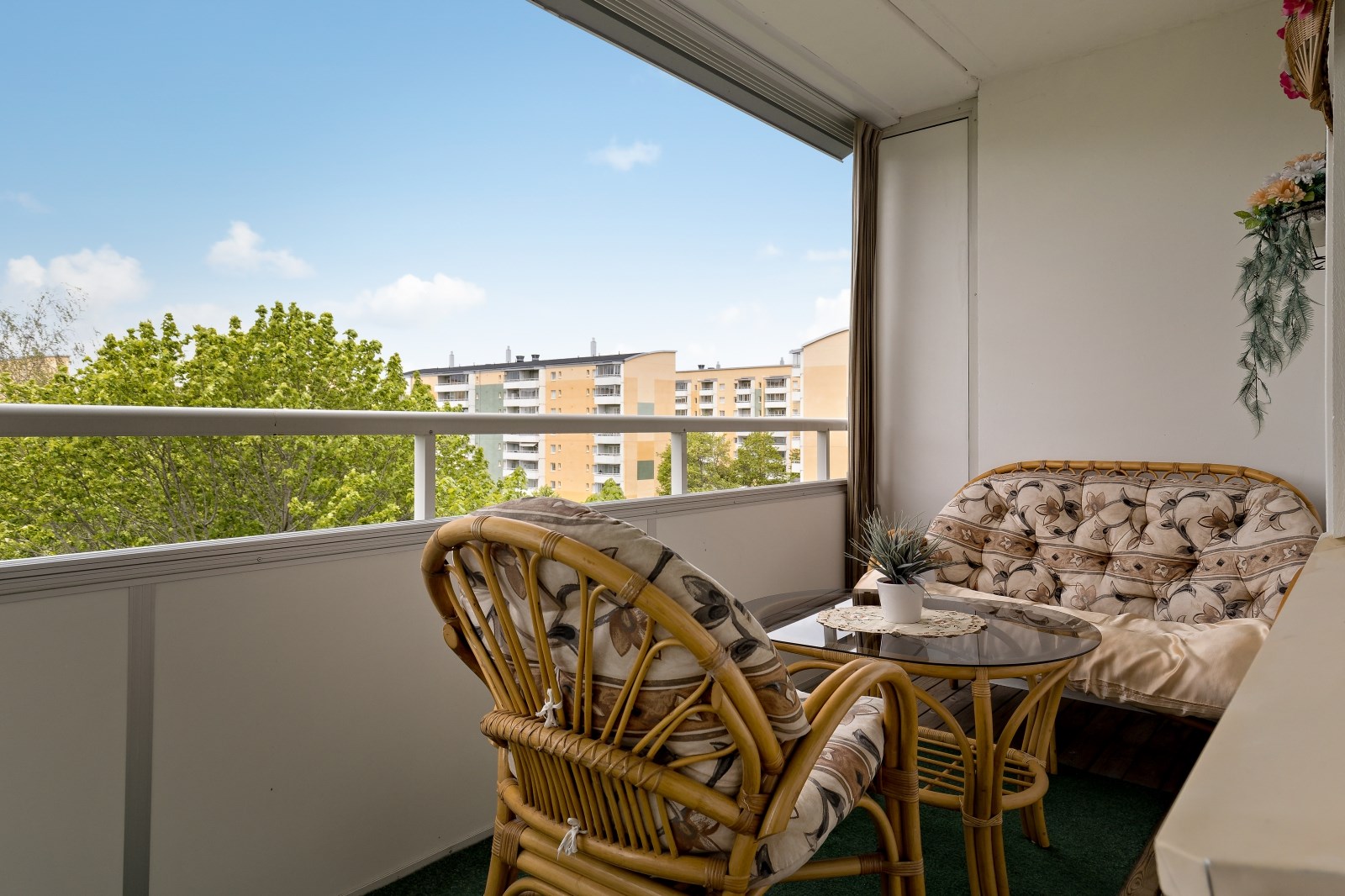 Välkomna till denna stilrena lägenhet med rymlig inglasad balkong som bjuder på fin utsikt över omgivningen. Bostaden är i gott skick med stambytt badrum och en optimal planlösning med stora rum och fint ljusinsläpp vilket ger känsla av rymd. Här bor ni på en attraktiv adress med närhet till Hallunda Centrum, Tunnelbana, bussar, skolor och vackra grönområden.