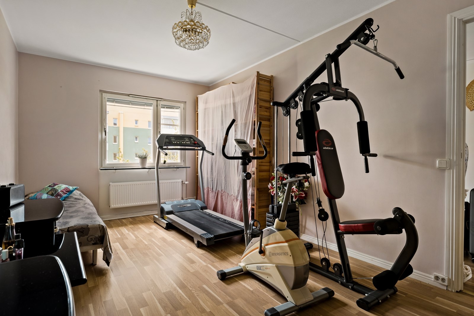 Det finns bastu, cykelförråd, förråd och tvättstuga i angränsande fastighet.