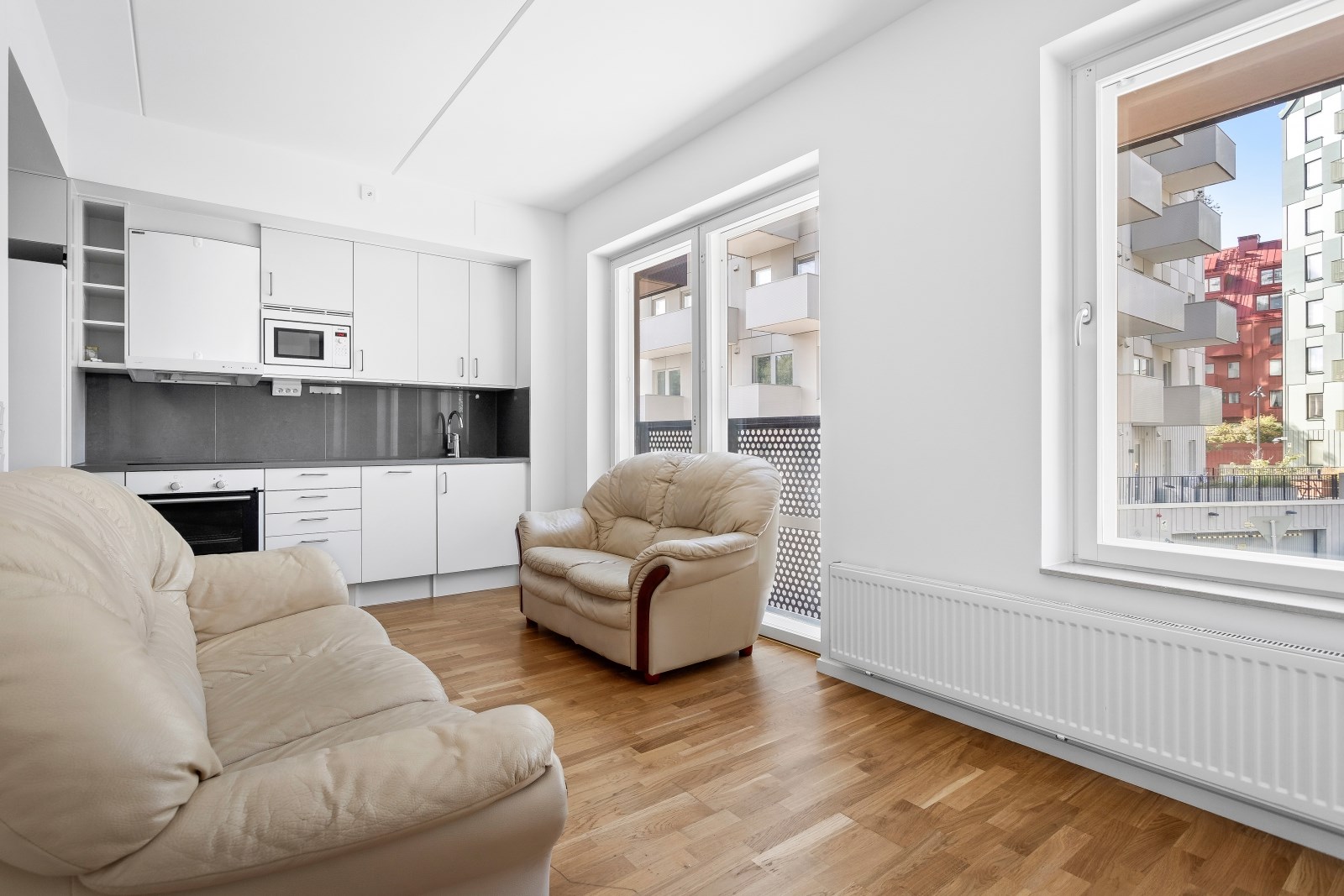 På våning 1 finner ni denna ljusa 2:a med härlig fransk balkong i sydväst läge. Bostaden strålar av modernitet med nymålade väggar från 2024, öppen planlösning, smakfull inredning och genomtänkta materialval. Vidare erbjuder bostaden en välkomnade hall med garderober, helkaklat badrum, utrustat med golvvärme och tvättdel. Rofyllt sovrum med garderober, lätthanterligt vardagsrum samt ett fullutrustat kök från Marbodal som gör matlagningen till en fröjd.