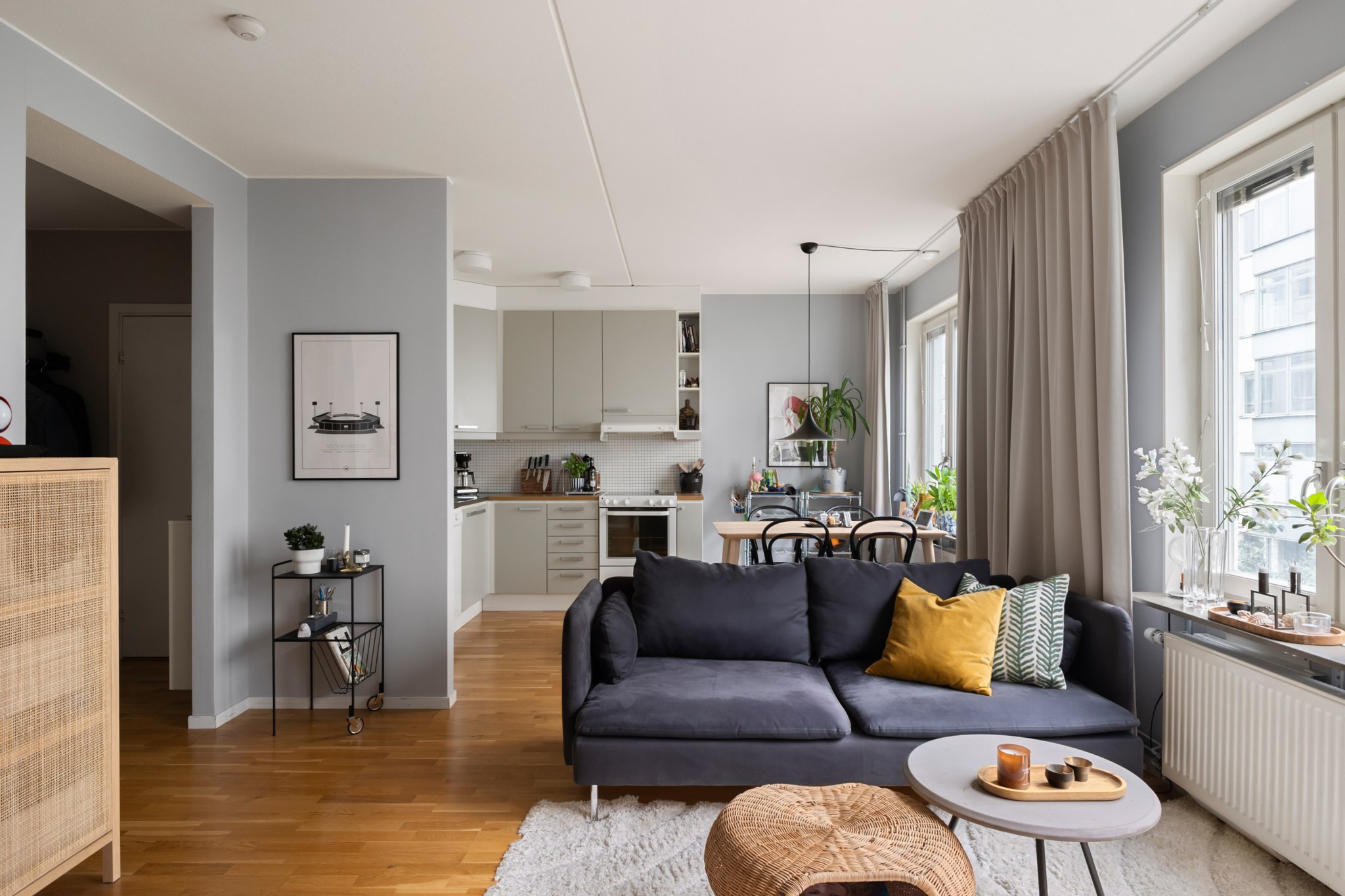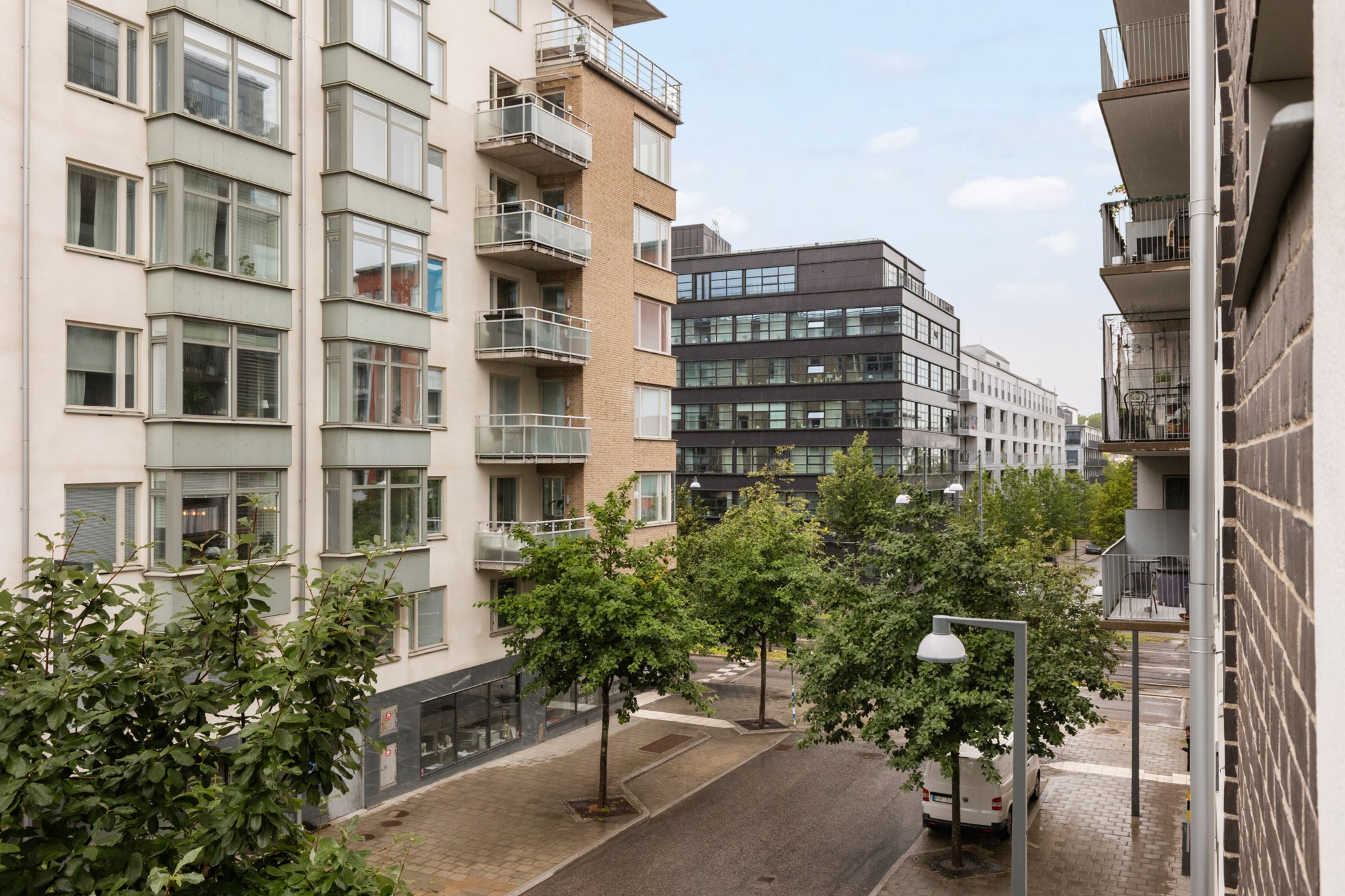 Välkommen till denna smart planerade bostad i central del av Hammarby Sjöstad. De generösa fönsterpartierna i kombination med en väl tilltagen takhöjd skapar en ljus och luftig atmosfär. Den öppna planlösningen mellan kök och allrum öppnar upp flera möbleringsmöjligheter och ger en rymlig känsla. Ett attraktivt boende i välbyggt hus med hög standard och genomgående behagliga färg- och materialval. Väggarna är målade i en ljusgrå kulör samt genomgående ekparkettgolv.