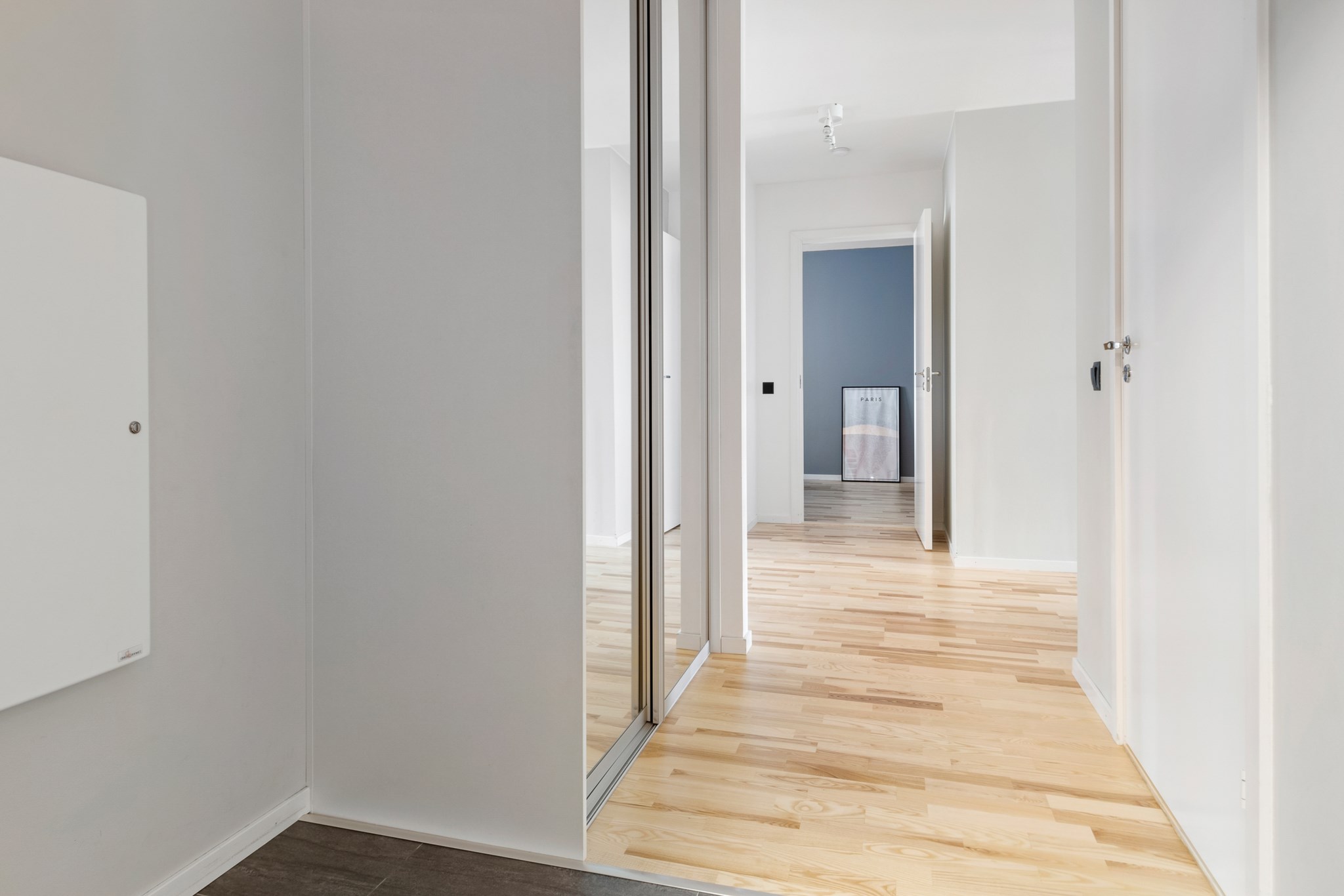 Välkomnande och rymlig hall med plats för klädavhängning samt ytterligare förvaring i hallens garderob.