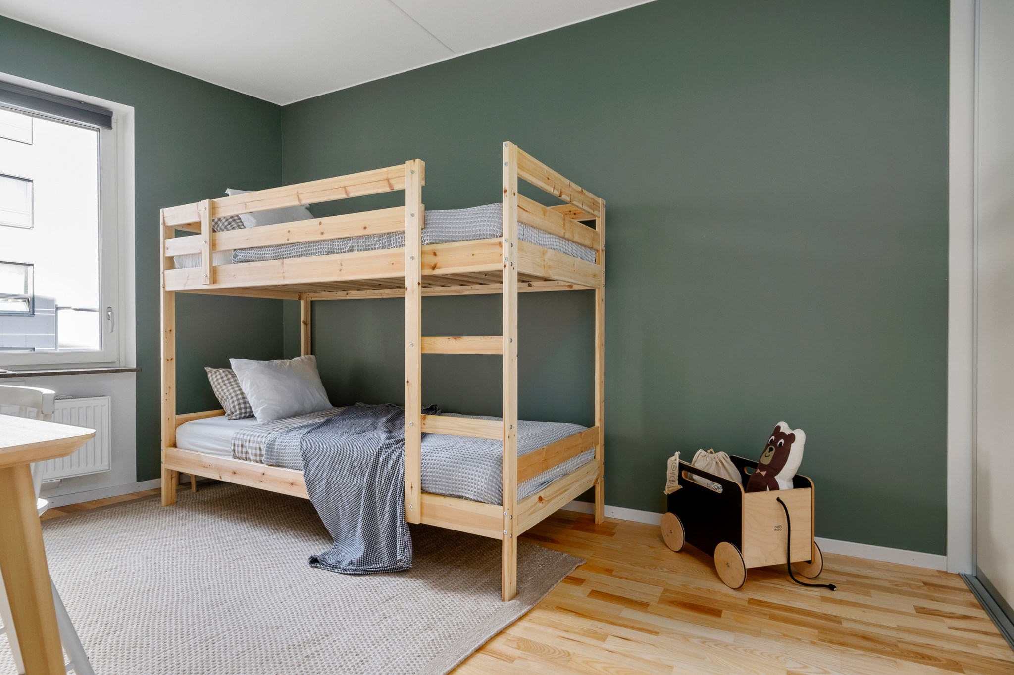 Lägenheten har tre rymliga sovrum. Två av dem vetter mot föreningens lugna innergård samt ett av dem, mot lugna Fredsborgsgatan.