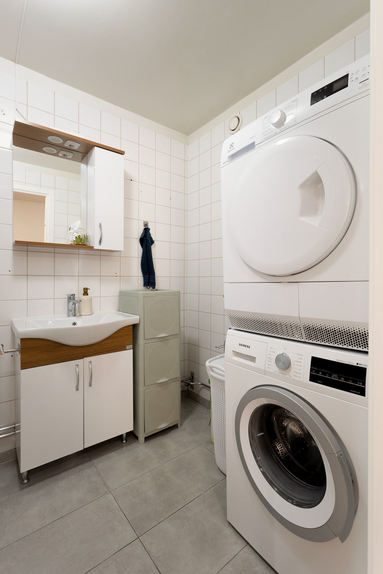 Det finns bastu, cykelförråd, festlokal, pool, gym, uthyrningslägenhet, samlingslokal och tvättstugor.