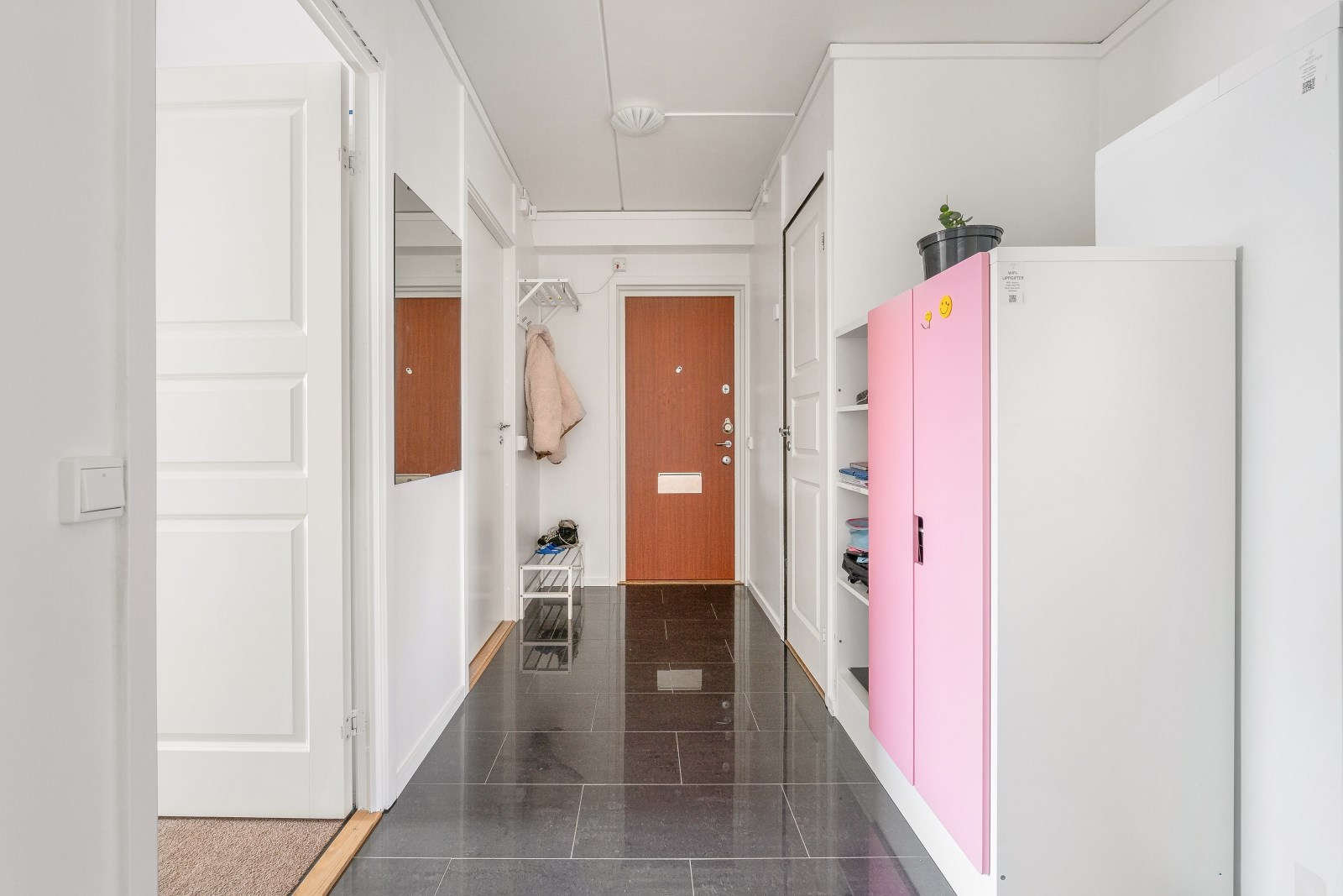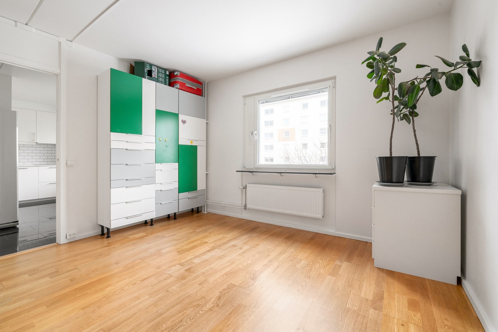 En rymlig och välplanerad 3:a belägen på tredje våningen med genomgående planlösning. På den stora inglasade balkongen som vetter i söderläge kan man njuta av solen under större delen av dagen. Bostaden är i bra skick med fina ytskikt samt stilrent fullutrustat kök. Dessutom är lägenheten utrustad med både helkaklat badrum och gäst-wc som båda stambyttes under 2024. Bostadens planlösning bjuder på rymliga sociala ytor och två ordentliga sovrum. Utanför lägenhetens entré finns även ett tillhörande förråd som ingår i månadsavgiften.