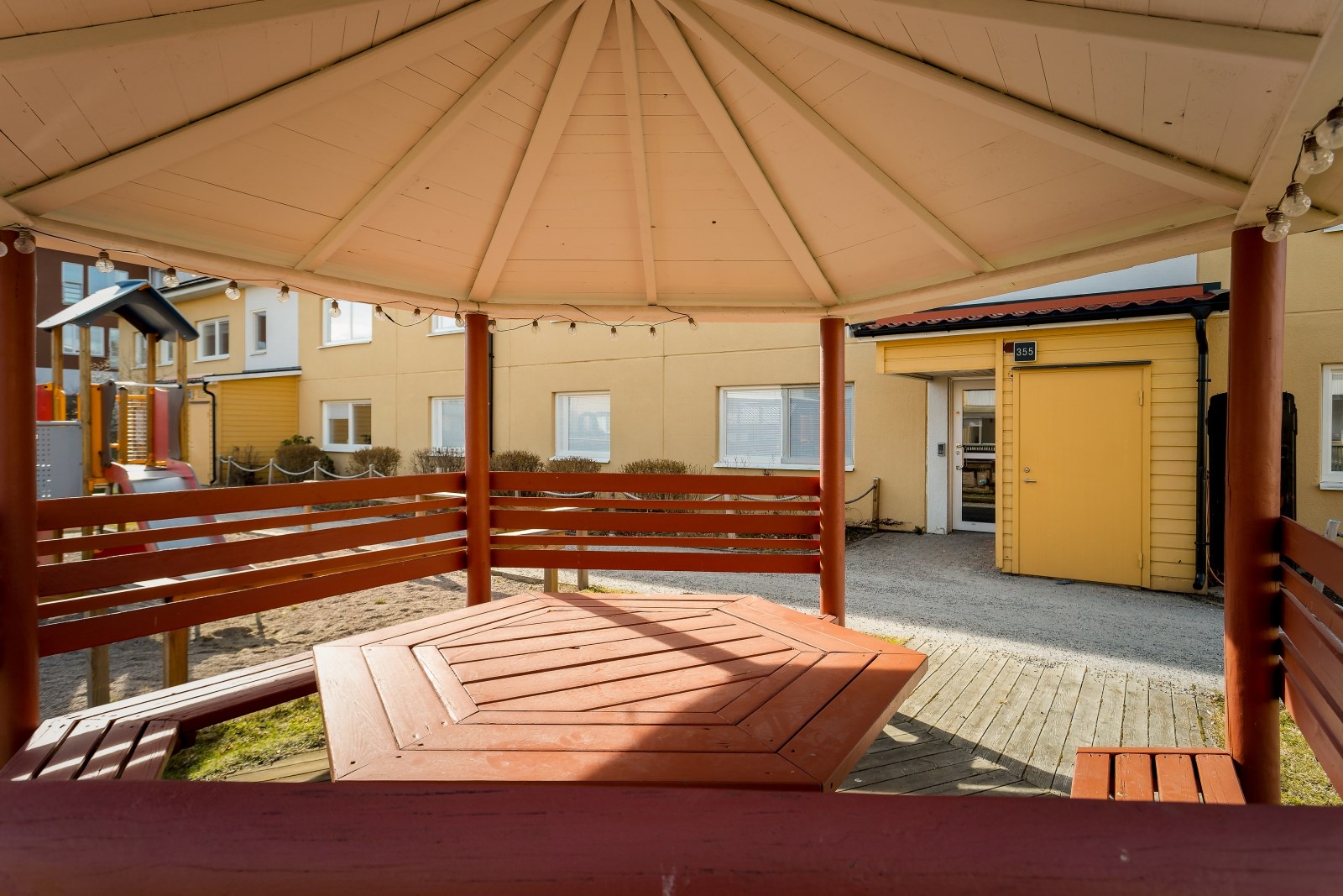 Det finns tvättstugor, cykelförråd, snickarverkstad samt en mindre samlingslokal som kan användas vid kalas och liknande. Föreningen hyr även ut ett antal kolonilotter för de odlingsintresserade. Till lägenheten hör ett förråd, beläget direkt utanför lägenheten.