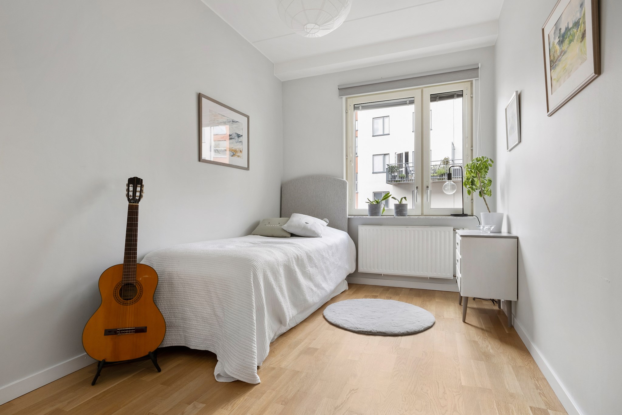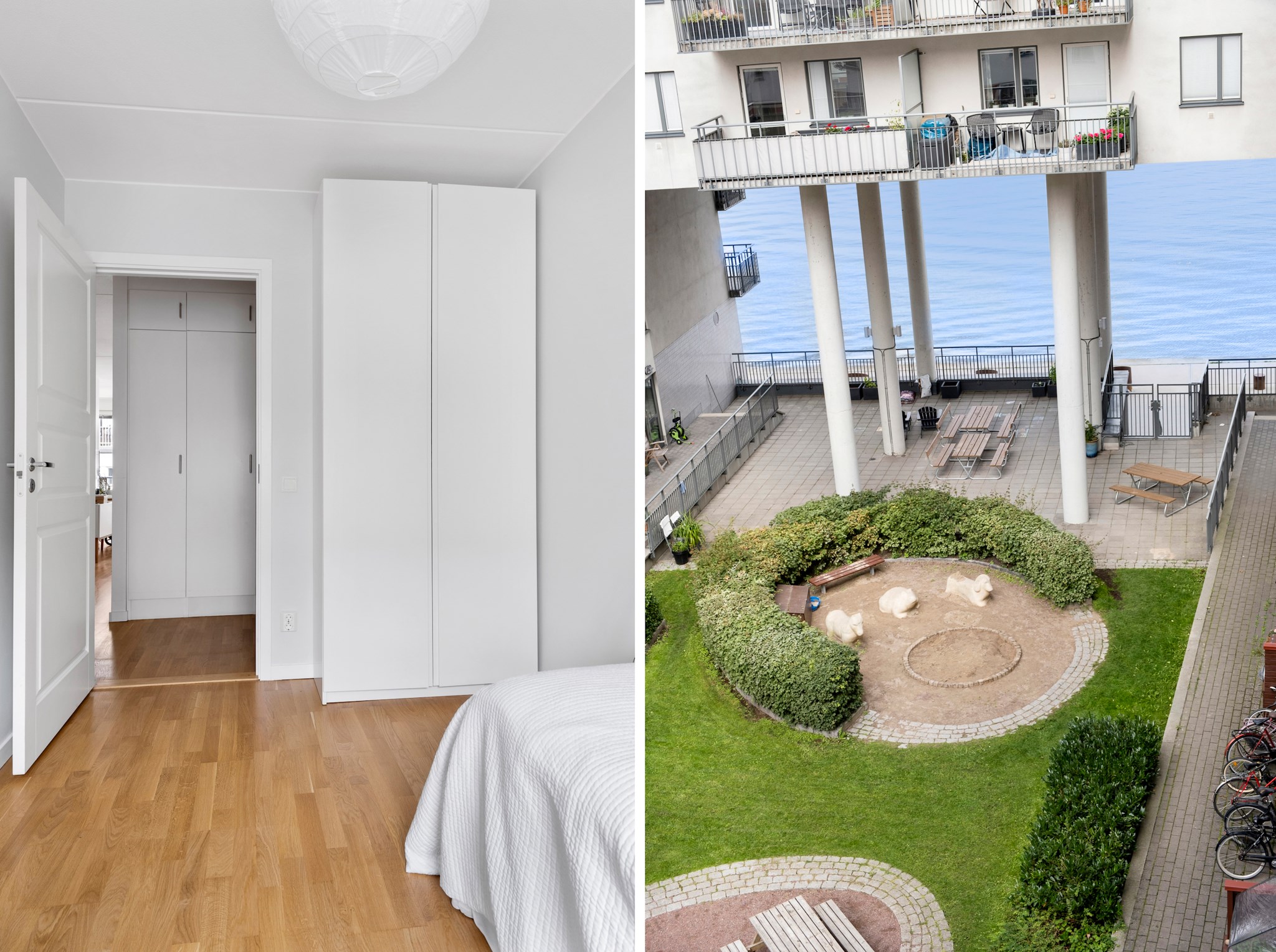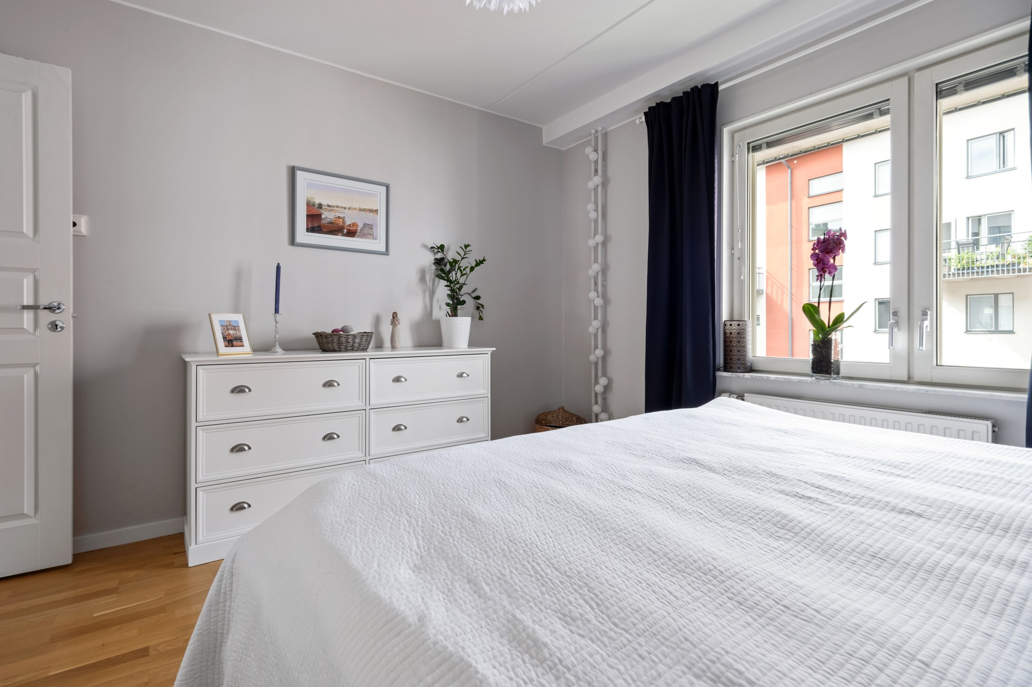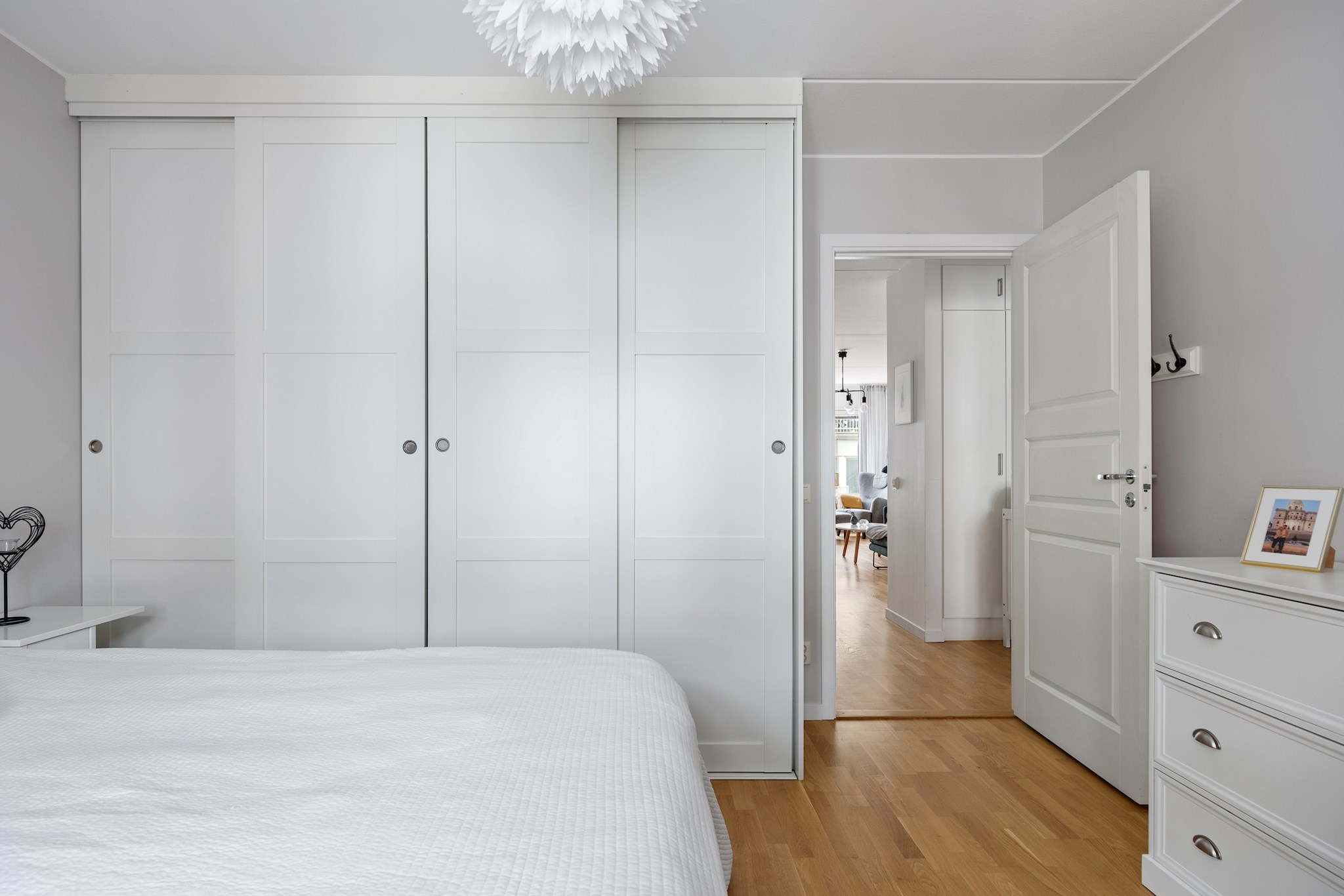 Lägenhetens två sovrum är lugnt belägna mot föreningens innergård. Det största sovrummet rymmer utan problem en stor dubbelsäng och förvaring i flera garderober. Det andra sovrummet passar utmärkt som barnrum, gästrum eller arbetsrum. I detta sovrum erbjuds förvaring i två garderober.