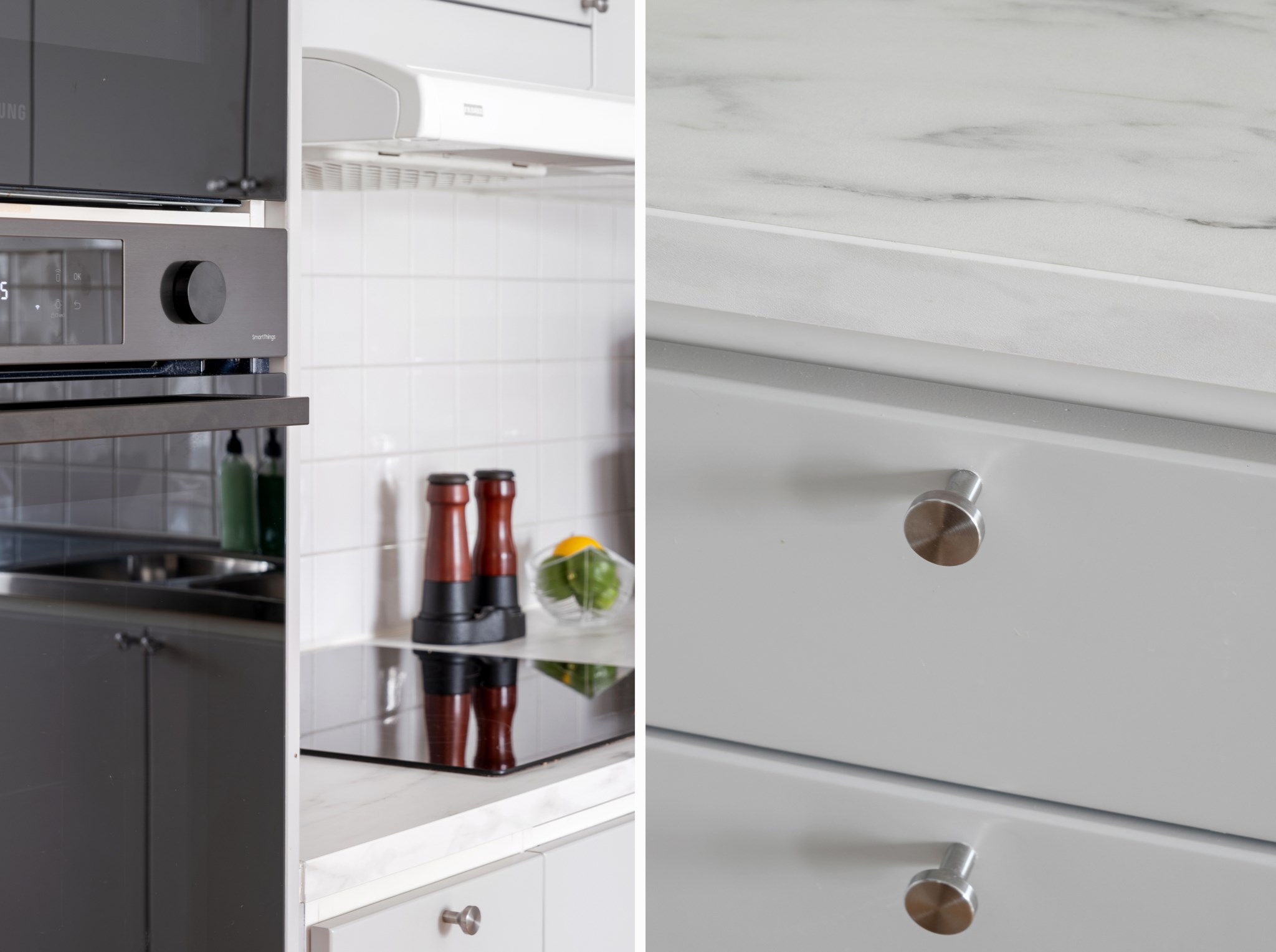 Köket är väldisponerat och fullt utrustat med gott om förvaring och fina arbetsytor som underlättar matbestyren. Matplatsen invid fönstret rymmer utan problem 6-8 personer eller fler om så önskas.