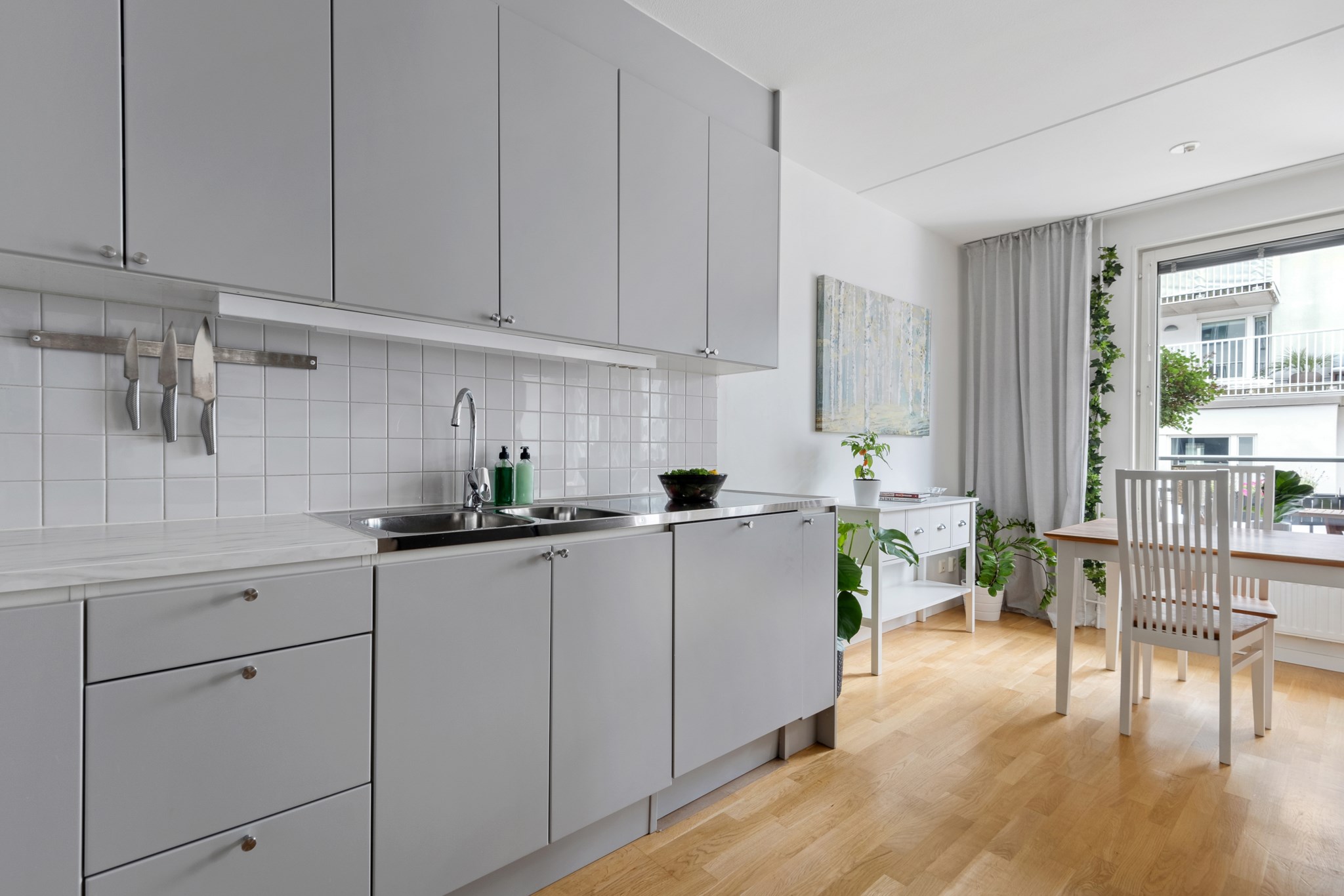 Attraktivt belägen invid flertalet parker, grönområden, tvärbana, och Mälarens vatten. Området erbjuder även mycket bra service och stort utbud av bra matbutiker, skolor, dagis, restauranger, caféer, gym m.m. I närheten finner ni en bra och välsorterad matbutik. För den som söker ännu större utbud så finns Liljeholmens stora galleria på ca 5 minuters promenadavstånd. Södermalm nås från två håll. Via cykelhissen i Brohuset som tar er smidigt upp till Årstabron och över Söder. Eller via Liljeholmsbron till Hornstull. Det finns även en trappa upp till Årstabron. Denna väg tar ni er även till Årstabergs pendeltågsstation på cirka 11 minuter.