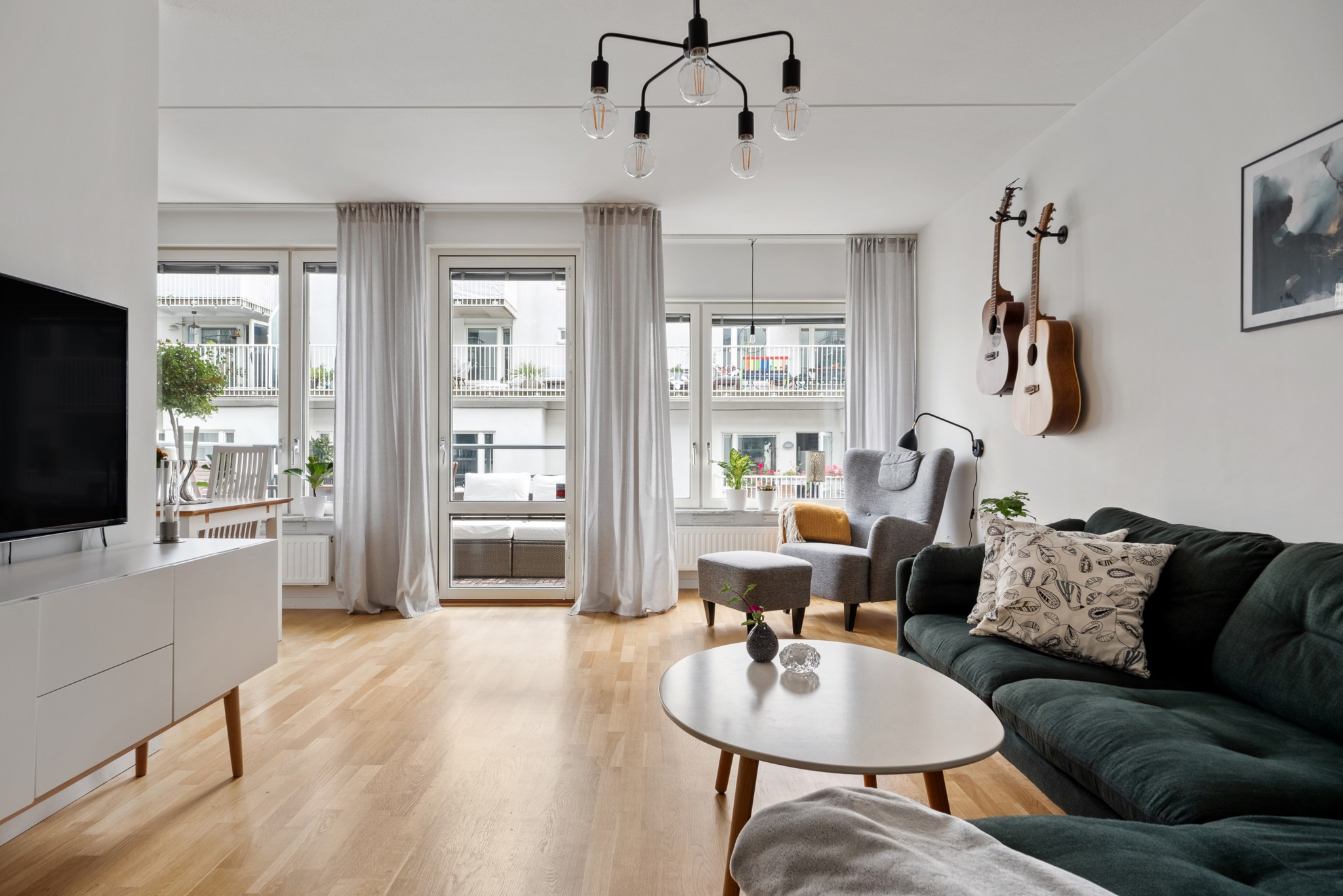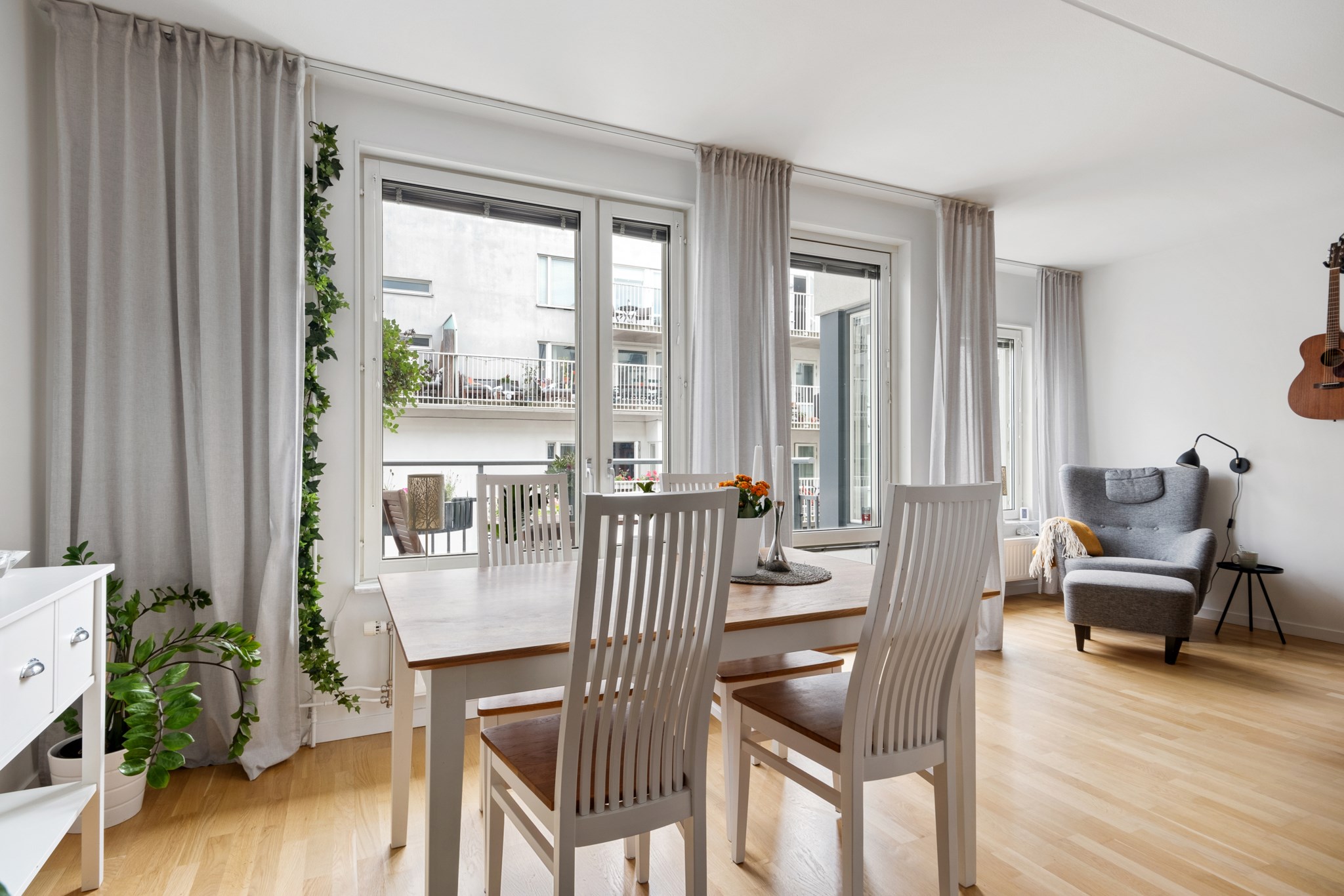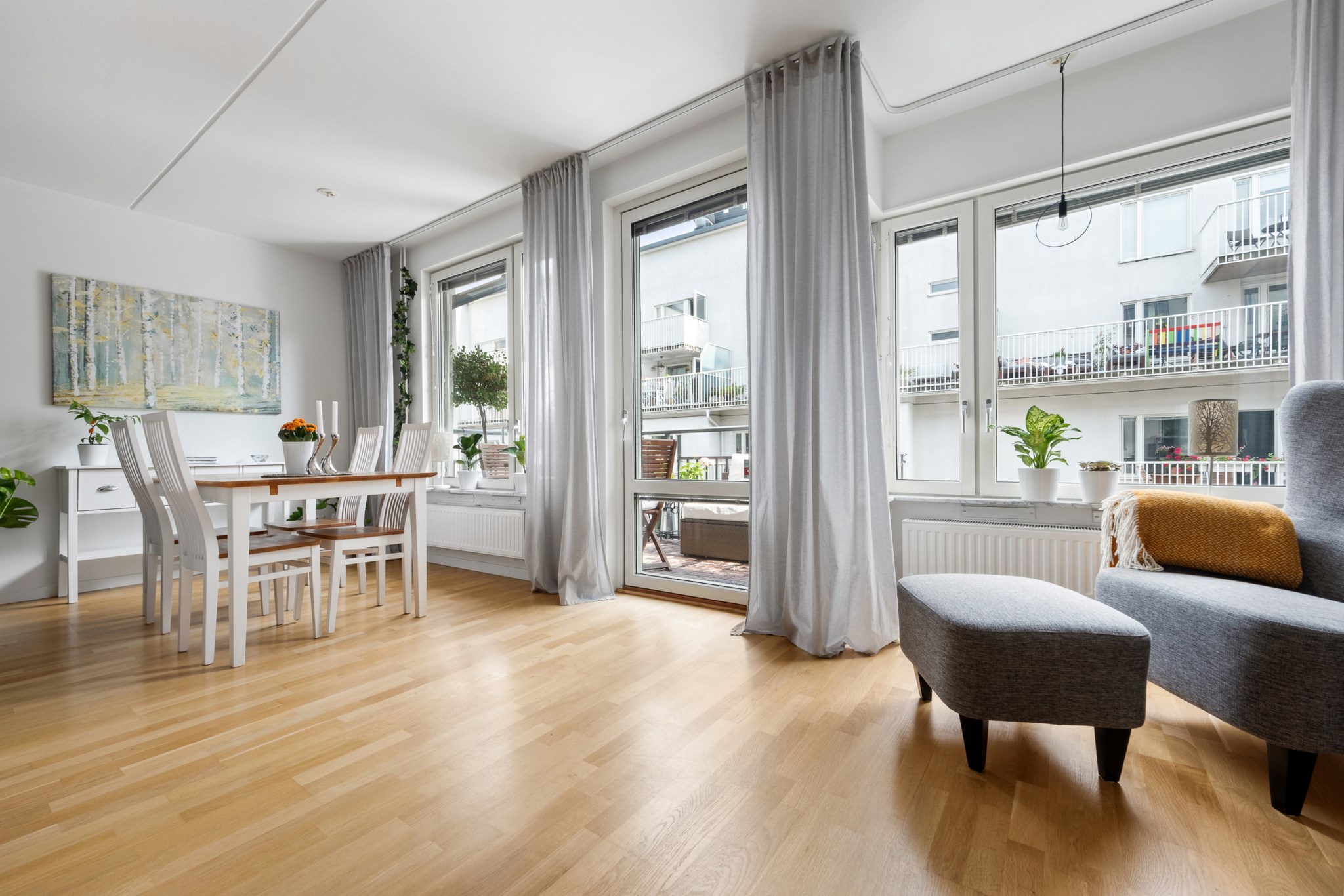 Trivsam och lugnt belägen med genomgående planlösning och massor av ljusinsläpp via stora fönsterpartier. Den extremt yteffektiva layouten gör att bostaden upplevs härligt rymlig och större än vad siffror anger. Den öppna planlösningen mellan kök och vardagsrum inbjuder till socialt umgänge och låter ljuset flöda fritt mellan rummen.